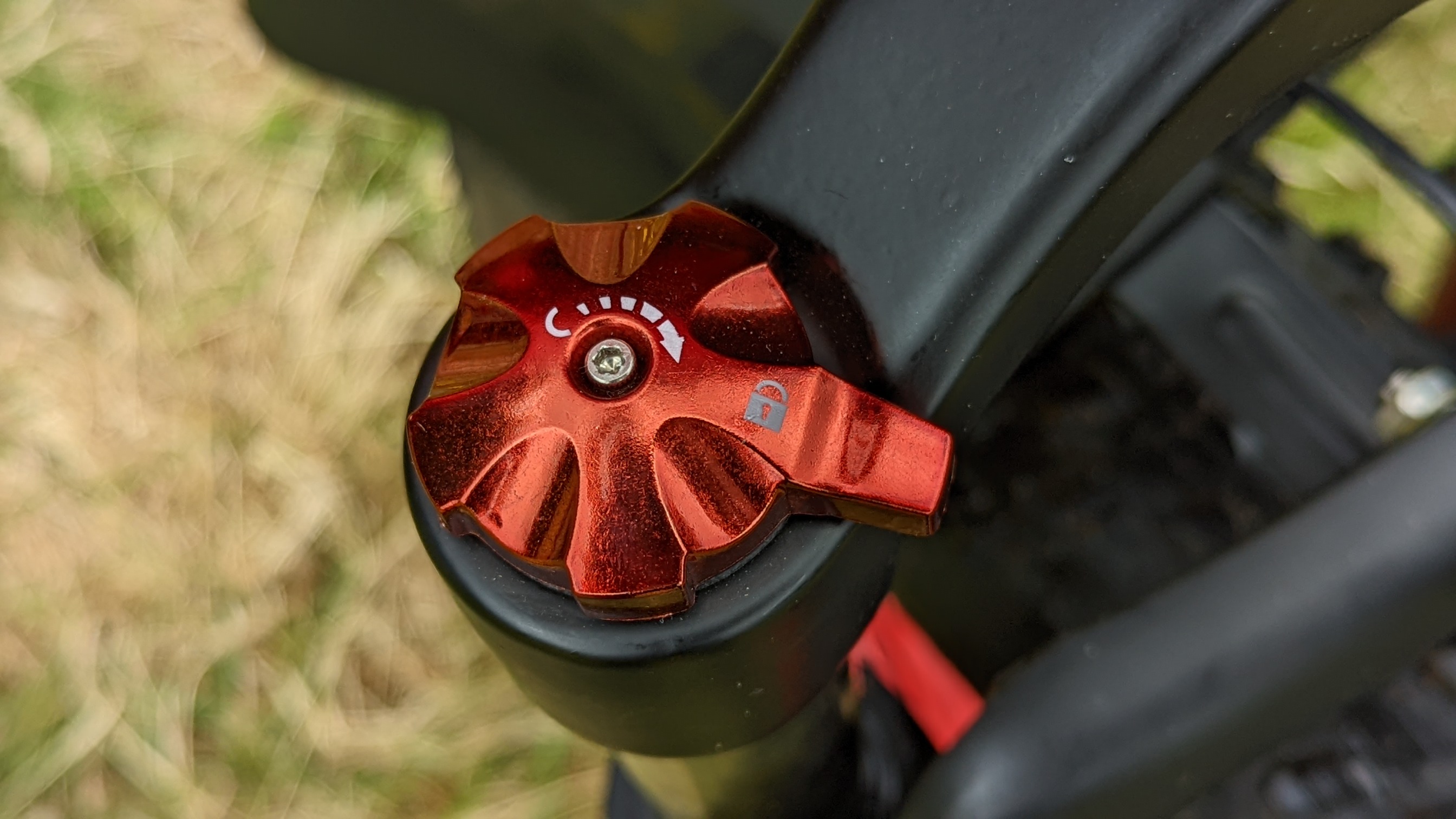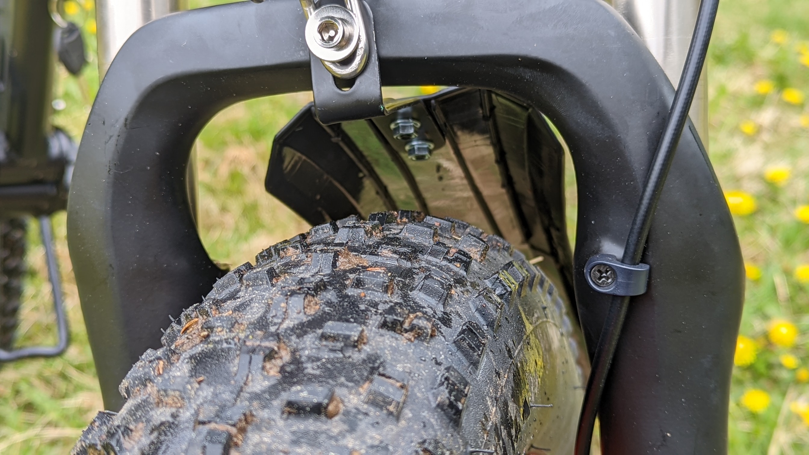 Die Federung ist fantastisch und saugt alle Unebenheiten weg. Auf einen Helm sollte man dennoch setzen. Dazu empfehlen wir unseren Vergleichstest smarte Fahrradhelme. Dank der Federung und der 4 Zoll dicken 20-Zoll-Reifen mit griffigem Profil kann man auch mit höherer Geschwindigkeit Bordsteine hinauffahren. Selbst anspruchsvolle Wald-Trails sind für das Bike kein Problem. Dicke Wurzen, Steine und Schlaglöcher meistert es besser als die ausgewachsenen E-Mountainbikes in unserem Vergleichstest. Noch dazu lässt sich die Federgabel in ihrer Stärke justieren und auch komplett feststellen. Die hydraulischen Bremsen sind hervorragend. Sie lassen sich sehr einfach justieren und greifen beherzt zu.