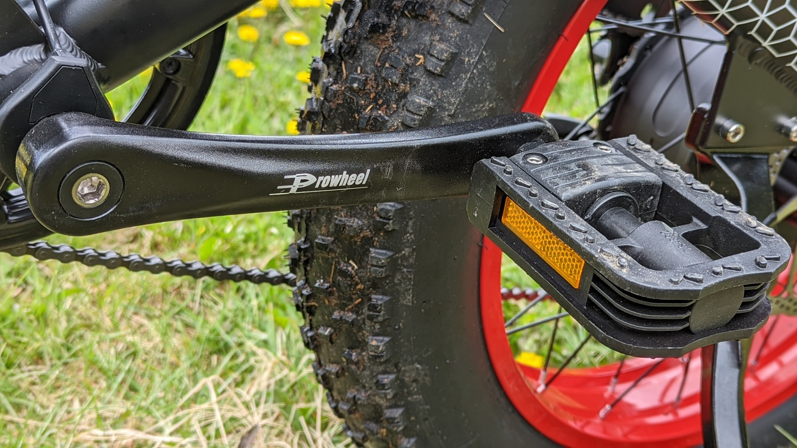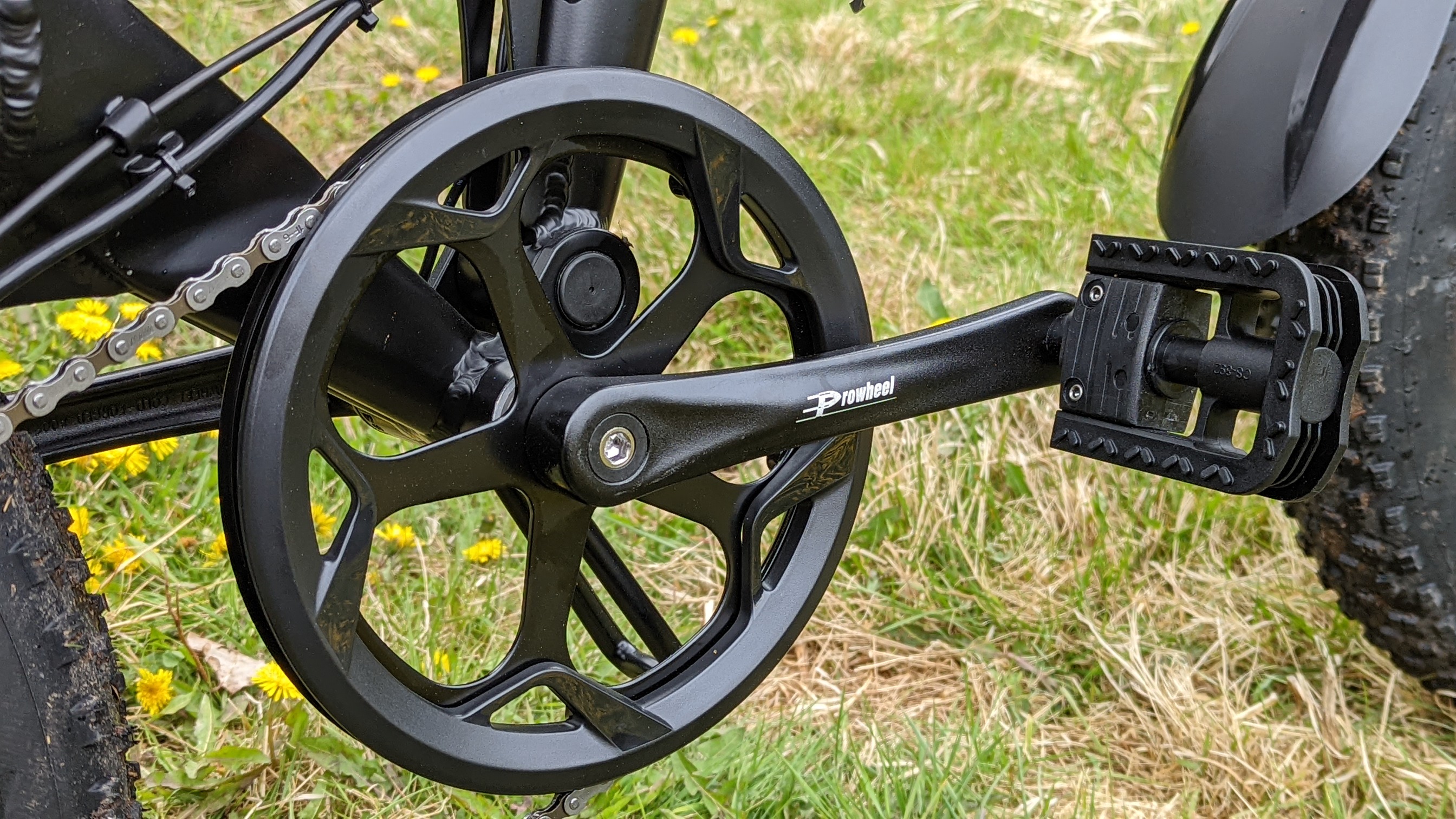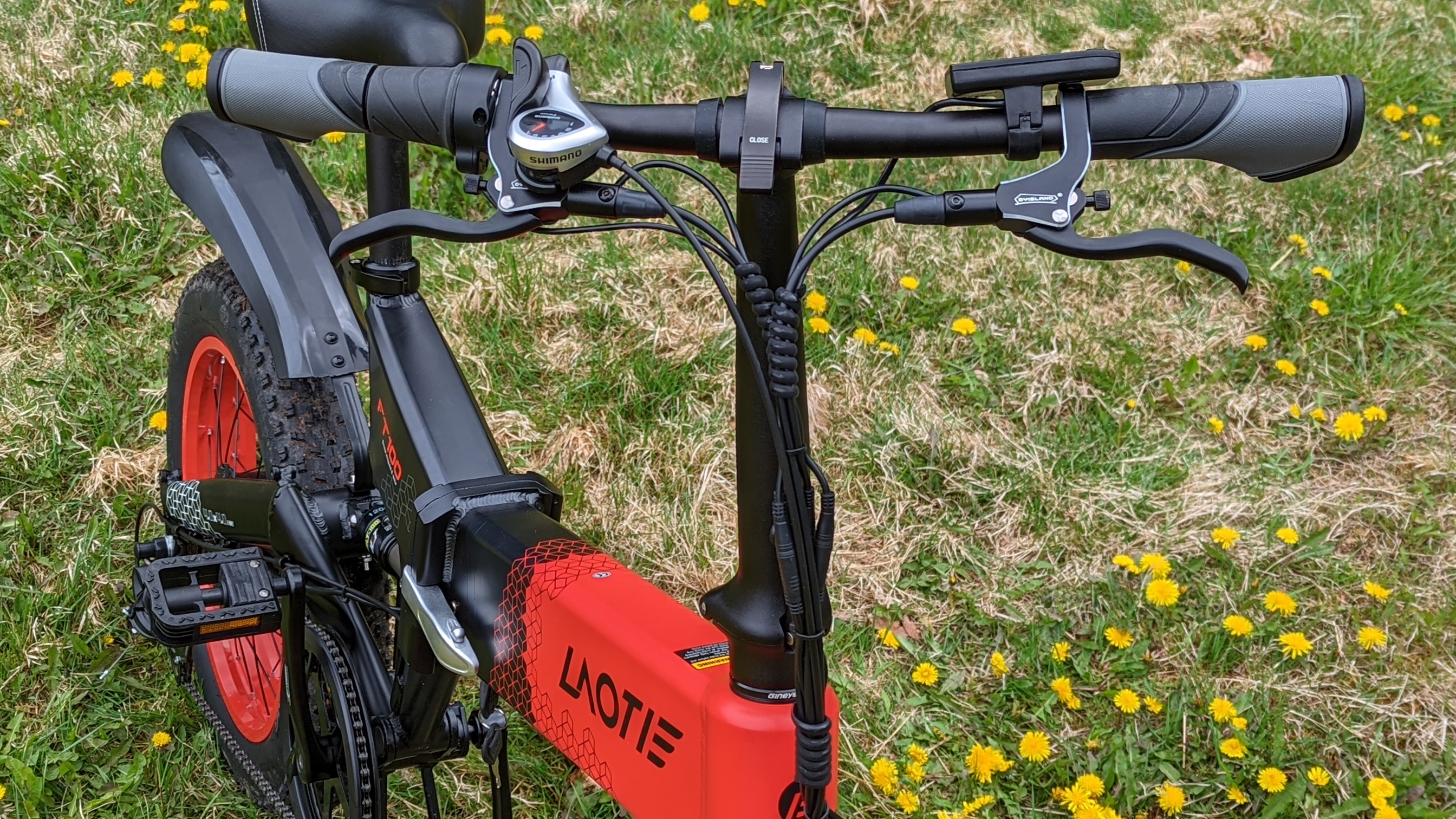 Dank der Schnellverschlüsse an Vorderrad und Lenker kann das E-Bike werkzeugfrei gar noch kompakter zusammengefaltet werden. So praktisch die klappbaren Pedale sind: Wir hätten es bevorzugt, wenn Laotie Modelle aus Metall angebracht hätte. Die Kunststoffpedale machen den Eindruck, als könnten sie unter starker Belastung brechen. Der Hersteller nutzt Standard-Schrauben, so dass man die Pedale leicht wechseln kann.