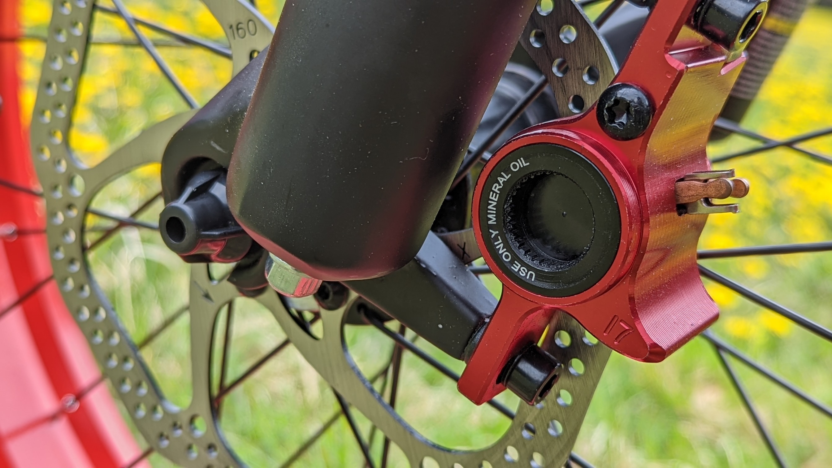 Die Reifen haben zunächst nur wenig Luft. Das ist bei einem E-Fatbike auch okay, dort liegt die Empfehlung zwischen 0,2 bar und 0,8 bar. Mit wenig Druck schlucken die Reifen Unebenheiten besser weg. Wer sie straffer aufpumpt, hat dafür bessere Lenkeigenschaften. Die Bremsen sind hydraulisch und lassen sich deswegen über Rädchen an den Bremsgriffen justieren. Einfacher geht’s nicht. Der Packung liegt zudem ein einfaches Kabelschloss bei. Schlösser gehen auch schlauer und besser, wie unser Vergleichstest vier smarter Fahrradschlösser zeigt.