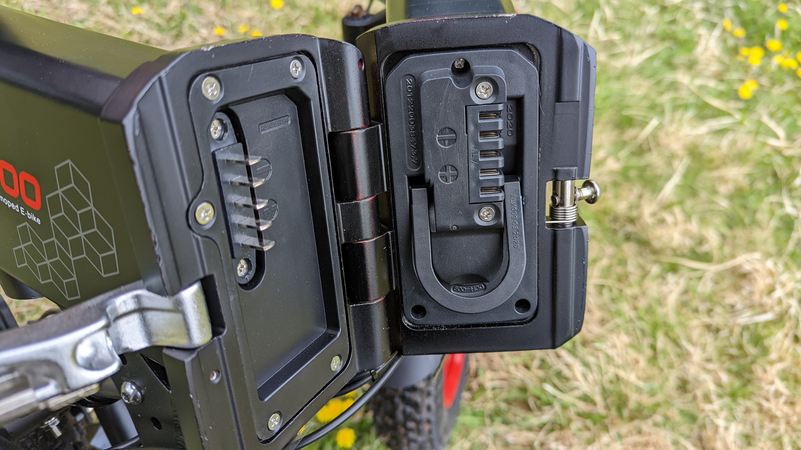 Der über einen Schlüssel entnehmbare Akku hat eine Kapazität von 720 Wattstunden. Damit ist er deutlich größer als der 614,4-Wattstunden-Akku im faltbaren E-Fatbike Fiido M1 Pro (Testbericht). Das teurere, aber vergleichbar gute Mate X (Testbericht) gibt es in einer Ausführung mit einem noch größeren 816-Wattstunden-Akku.