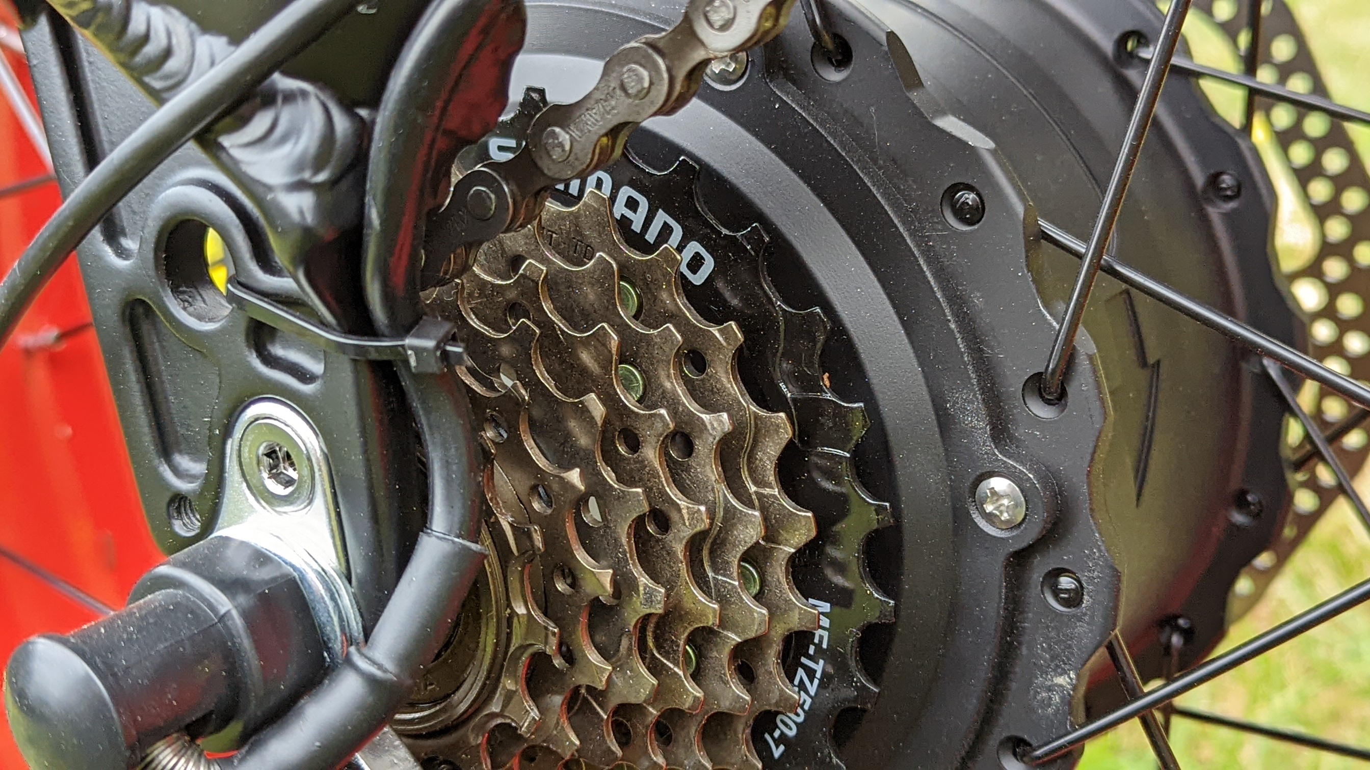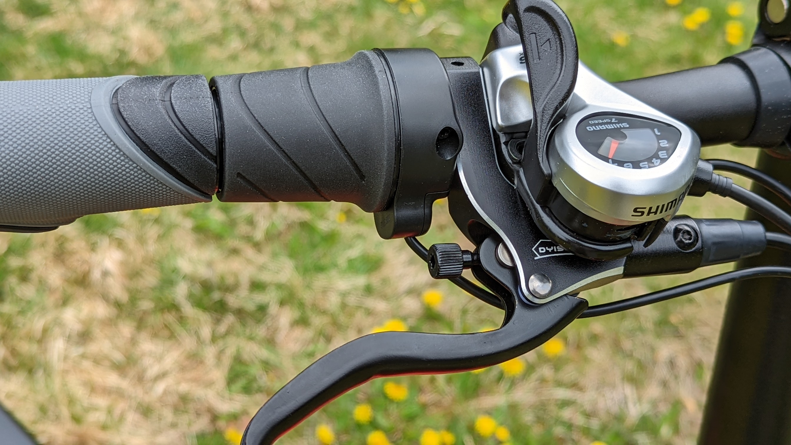 Die Shimano 7-Gang-Schaltung geht in Ordnung. Allerdings hätten wir uns im tiefsten Gang eine niedrigere Übersetzung gewünscht. Diesen Makel macht der starke Motor in großen Teilen wett. Er bietet eine Spitzenleistung von 1000 Watt. Zur Nennleistung macht der Hersteller keine Angaben. Die Elektronik ist gut. So springt der Heckmotor bereits nach einer geringen Pedalumdrehung an und stellt die Unterstützung genauso schnell wieder ein. Noch besser reagiert er auf den Gashebel. So lässt sich die Motorkraft fein dosieren und auch wirklich schwierige Passagen meistern.