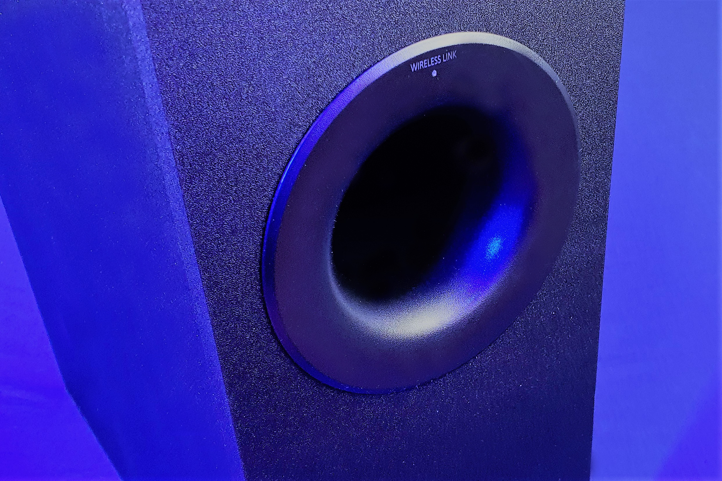 Da sich der Subwoofer per Funk verbindet und lediglich eine Steckdose benötigt, kann man ihn ebenfalls dezent platzieren. Er lässt sich mit einem Gewicht von 5,7 Kilogramm zudem leicht hin- und herbewegen und spielt sich mit 17,1 x 38,2 x 36,3 Zentimeter nicht in den Vordergrund.