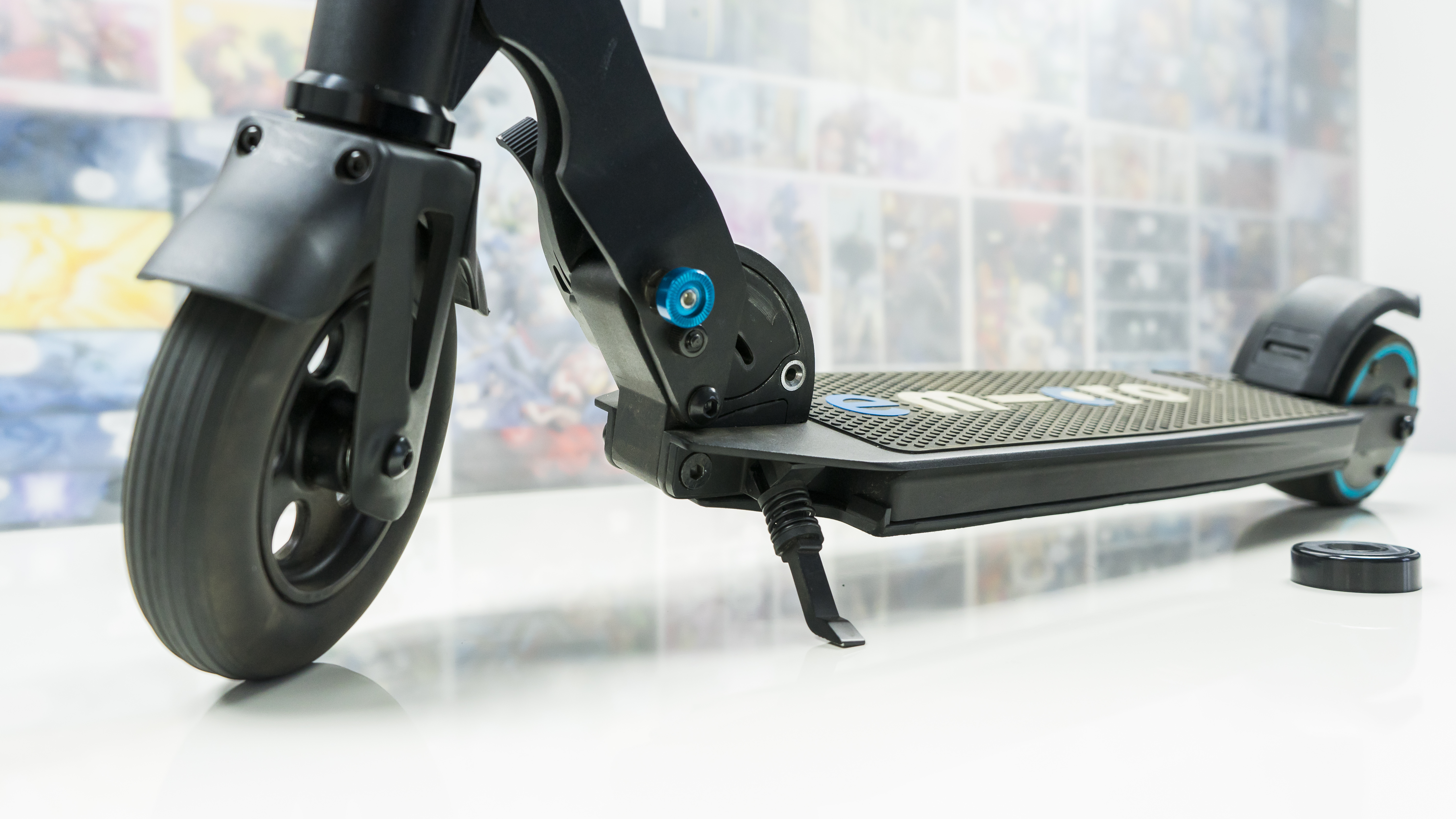 Gut, und wie fährt es sich nun mit dem emicro one? Eigentlich wie mit jedem anderen Scooter auch. Die Tretunterstützung greift erst nach dem Anfahren. Sobald man eine bestimmte Geschwindigkeit erreicht hat und langsamer wird, aktiviert sich der Motor und schiebt einen kräftig nach vorne. Je stärker und intensiver der Kick oder ein gezielter Impuls, desto stärker und langanhaltender die Unterstützung des Motors. Wenige kraftvolle Kicks sind ökonomischer und effizienter als viele kleine Kicks. Für den Anfang rate ich Euch zur Vorsicht: Man unterschätzt die Kraft des Motors leicht. Vermeidet außerdem Fahrten in der Dunkelheit oder bei Nässe. Und nein: emicro one plus Halfpipe ist keine coole Idee. Das Chassis würde dieser Belastung nicht standhalten.