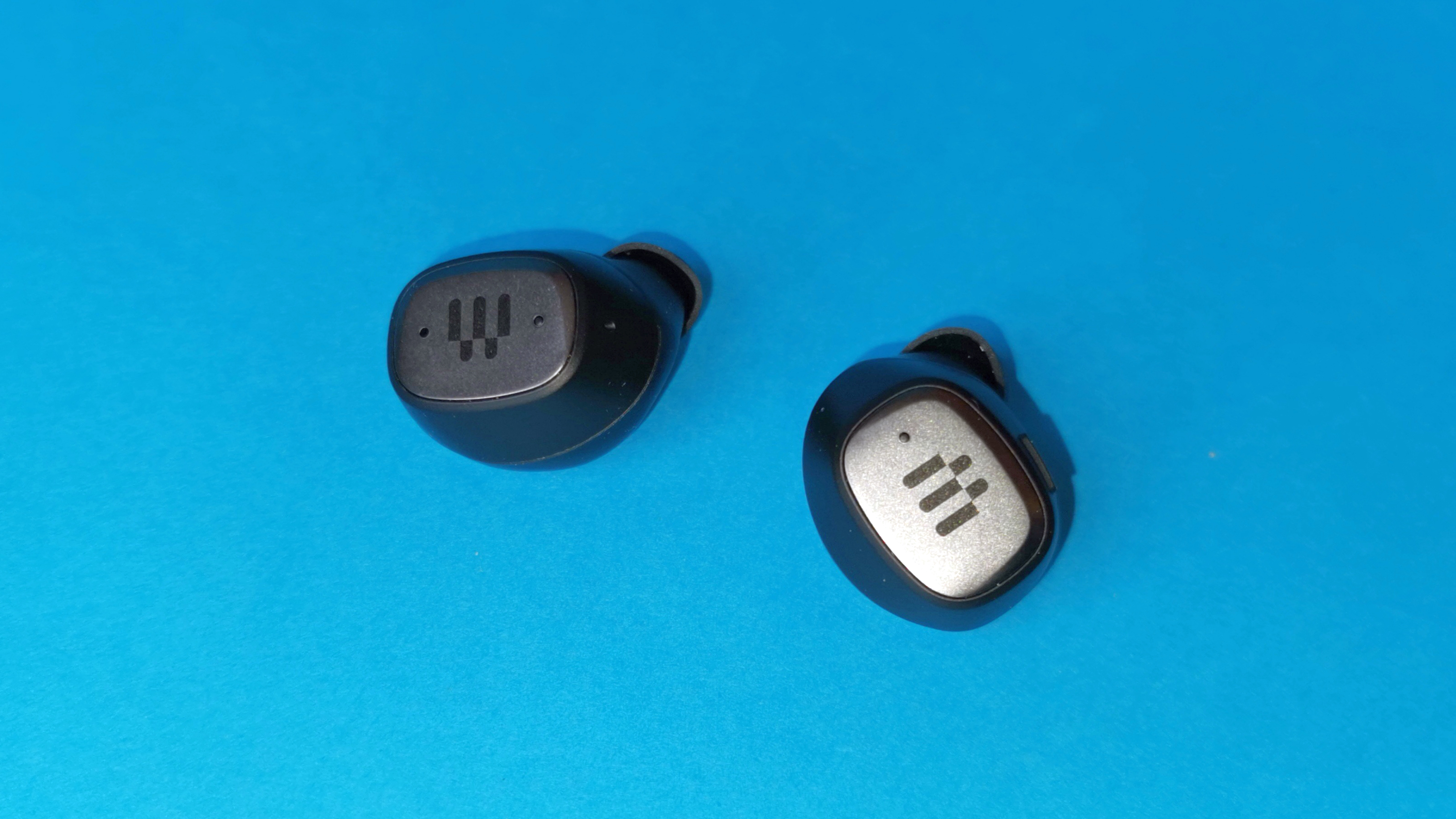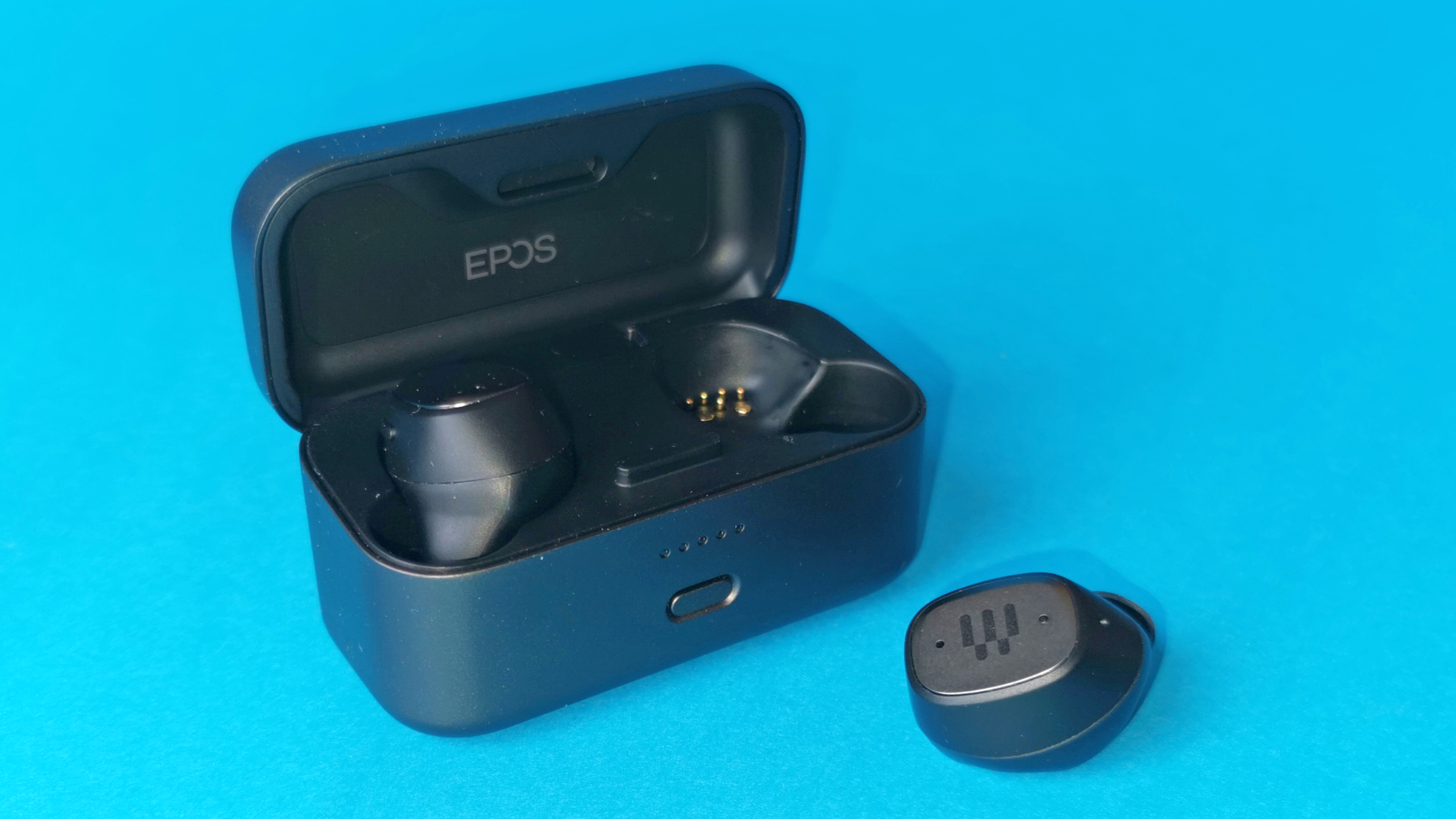 Die beiden Kopfhörer wirken, wie wir das auch von Sennheiser-True-Wireless-Modellen kennen, verhältnismäßig klobig, aber hochwertig. Für Erstaunen sorgt die altbacken erscheinende Bedienung per Drucktaster. Epos verzichtet auf eine berührungsempfindliche Rückseite und setzt stattdessen auf einen klassischen Taster am linken Kopfhörer. Die GTW 270 sind IPX-5 zertifiziert und dementsprechend gegen Schweiß und Regen geschützt.