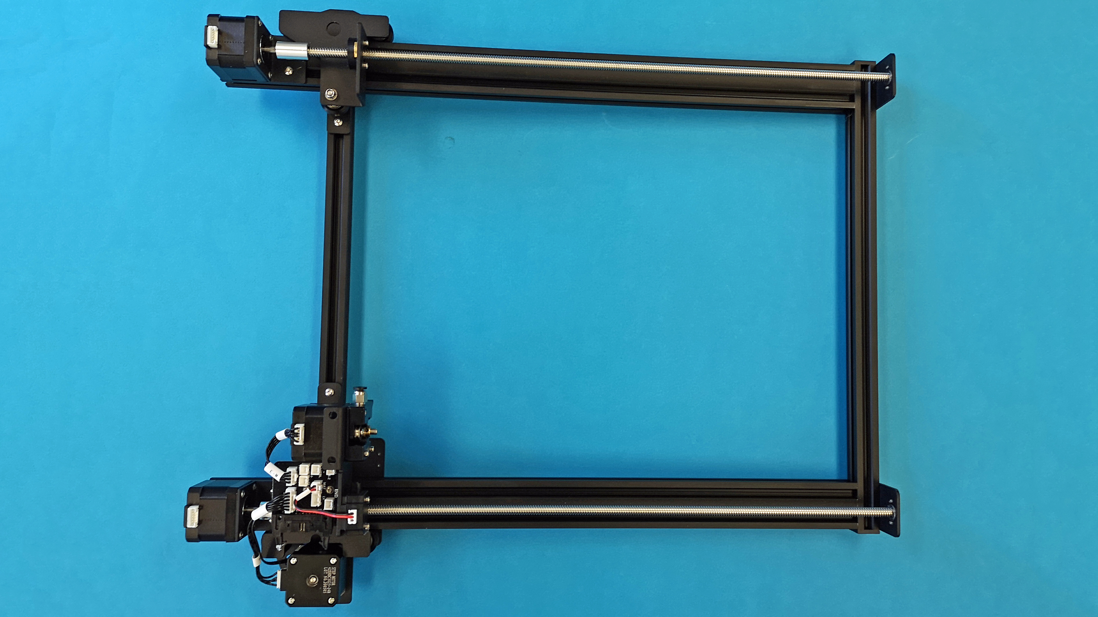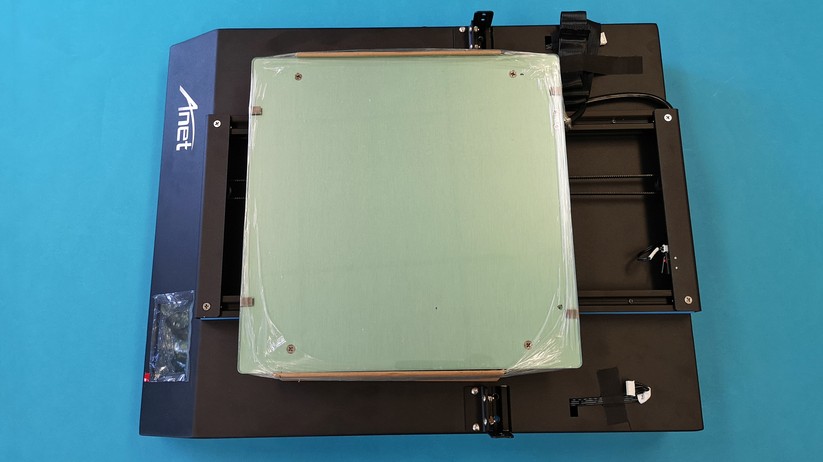 Der Zusammenbau ist eine wahre Freude und auch für ungeübte Personen absolut unproblematisch. Zuerst befestigt man mit 12 Schrauben das Ober- und Unterteil. Dieser Schritt ist in weniger als zehn Minuten erledigt. Anschließend kommt der fertig montierte Druckkopf auf die x-Achse. Nun folgt der Einbau des Zahnriemens für den Antrieb des Druckkopfes. Um ihn vernünftig zu montieren und die Spannung einzustellen, müssen die vier Schrauben des für die x-Achse zuständigen Motors gelockert sein. Beim Festziehen der Schrauben ist zweite Person hilfreich. Das Nachspannen funktioniert durch das Verschieben des X-Motors und den in der Halterung eingebrachten Langlöchern. Wir empfehlen an dieser Stelle die Nachrüstung von Unterlegscheiben, um die Konstruktion langfristig stabil zu halten. Schade, dass Anet dieses bereits beim ET4 bekannte Problem nicht ausgeräumt hat und hier gleich selbst Unterlegscheiben einsetzt.