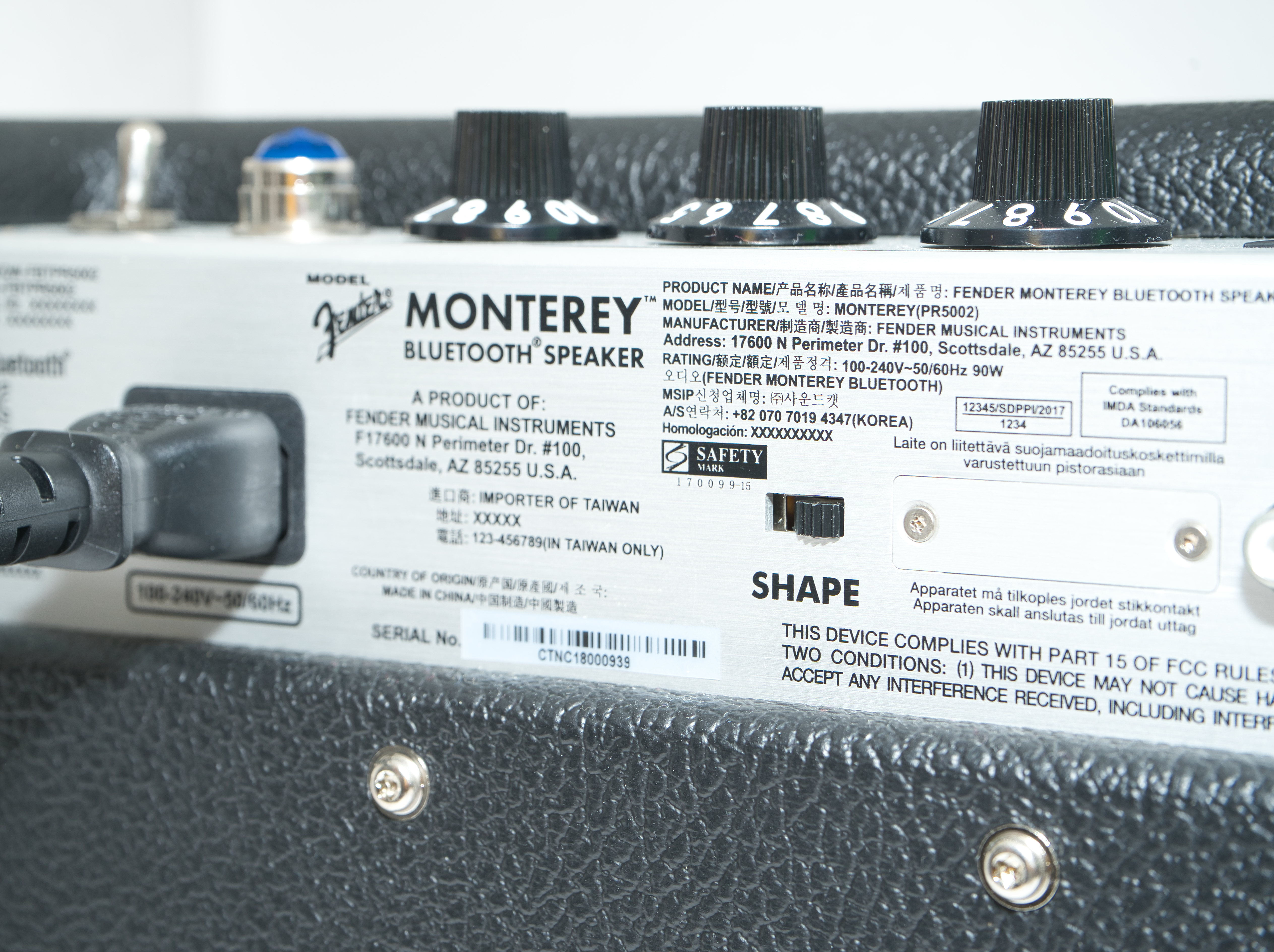 Zum Einschalten vertraut Fender auf einen schwerfälligen Kippschalter, der beim Umlegen mit einem lauten "Klack!" immer wieder Spaß macht. Wird der Lautsprecher einige Zeit lang nicht mit neuer Musik versorgt, schaltet sich der Fender Monterey von selbst ab. Um dies zu erkennen, müssen Nutzer auf die helle, blaue LED achten, die in diesem Falle erlischt. Zum Leben erwacht der Speaker erst bei der Betätigung eines der beiden Knöpfe oder zweimaligem Umlegen des Anschalters.