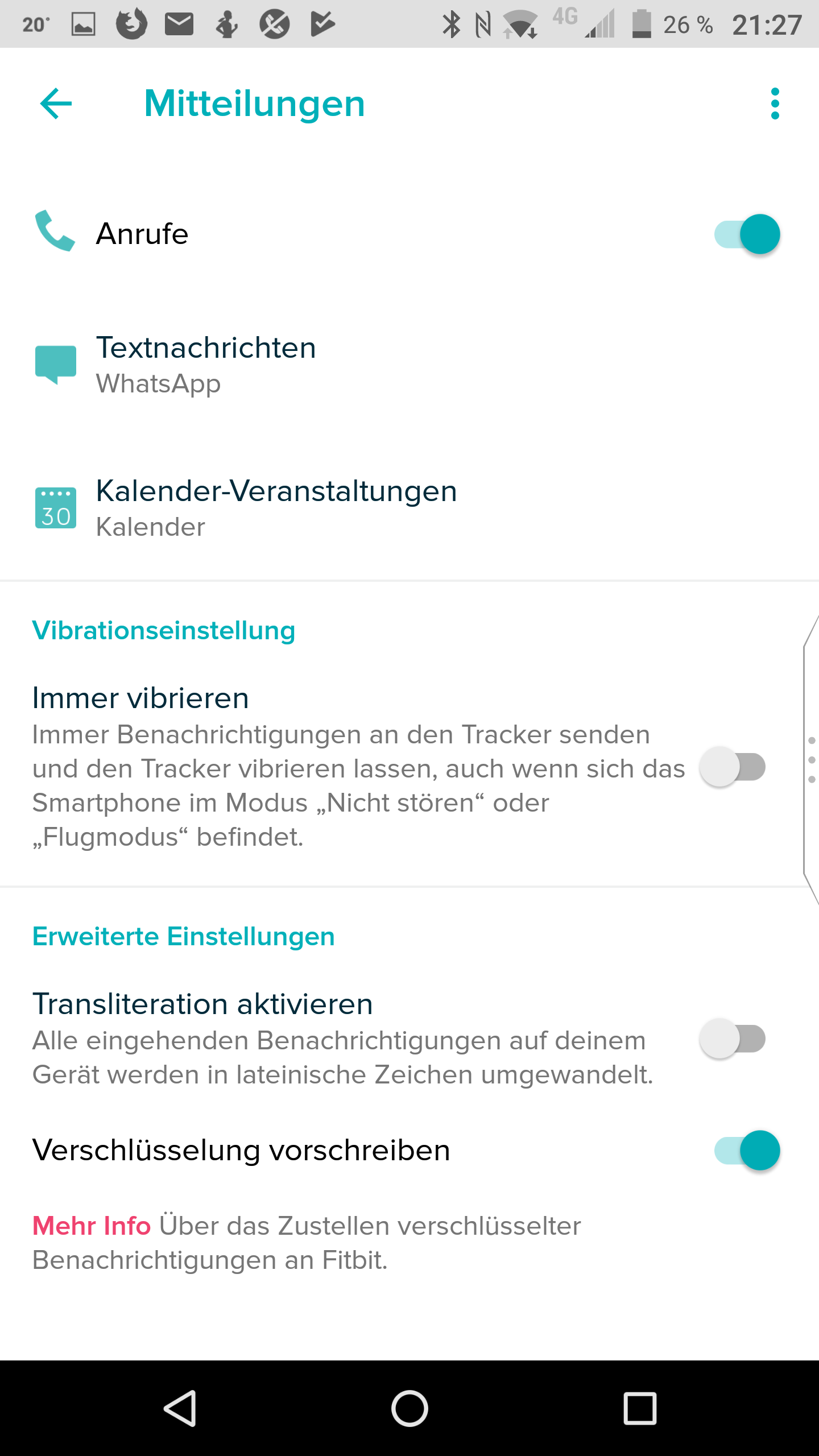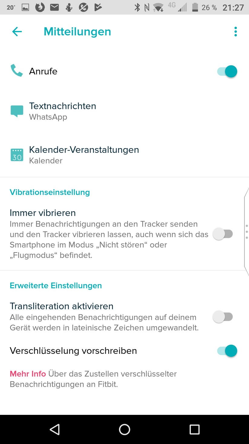 Bei den Benachrichtigen gibt es nicht viel zu sagen: Die Betreffzeilen beziehungsweise die Absender eingehender Nachrichten zeigt Display an. Dazu vibriert der Tracker kurz. Wie in den anderen Tests auch können Android-Nutzer in der App direkt einstellen, welche Anwendungen den Tracker Benachrichtigen dürfen. In iOS läuft dies über das zentrale Benachrichtigung-Management.