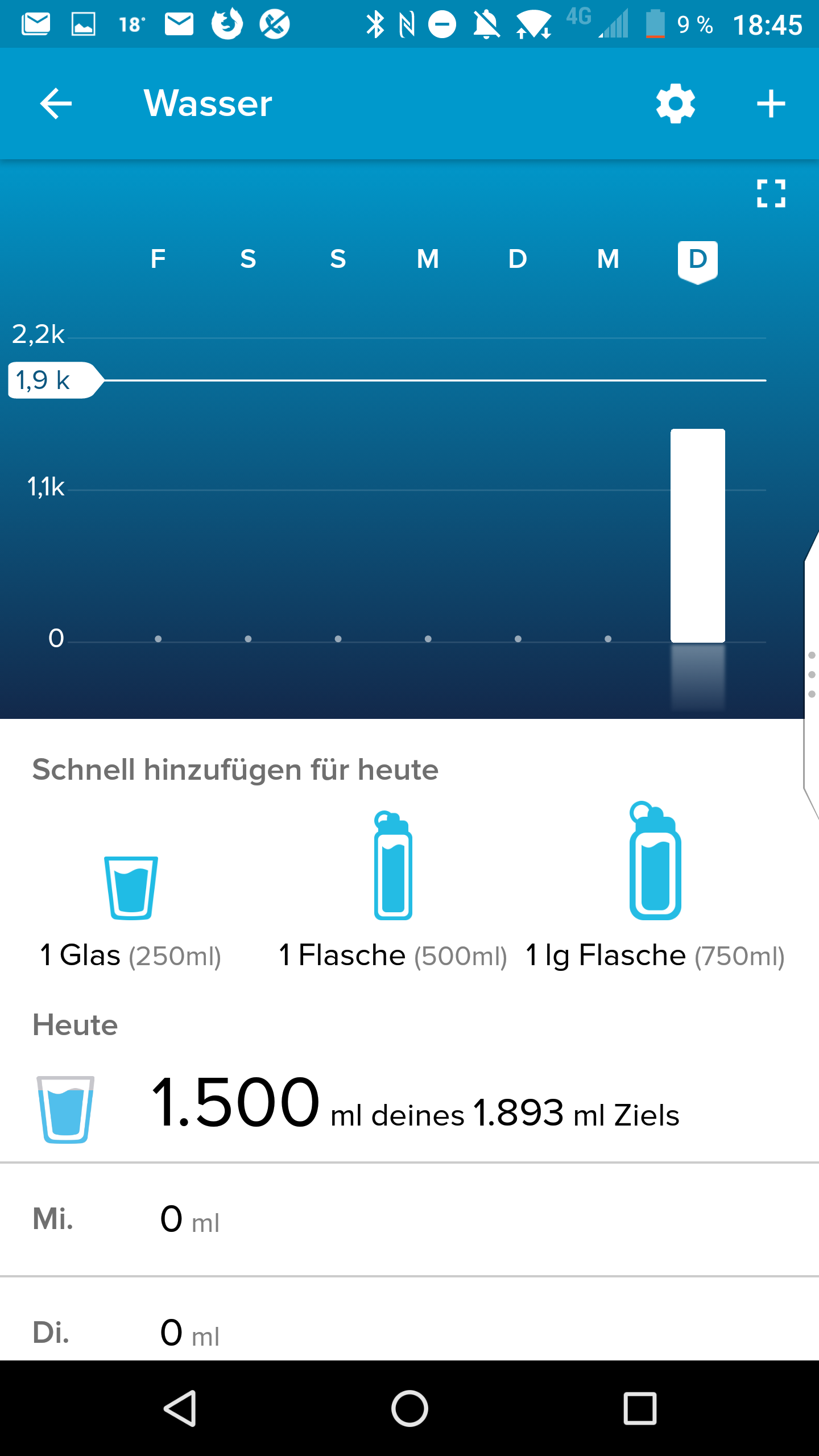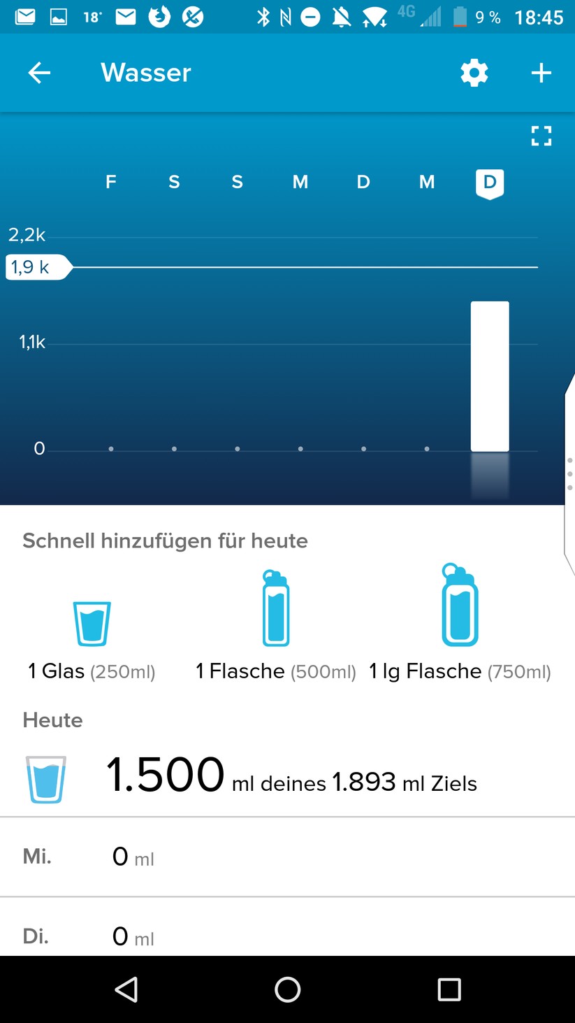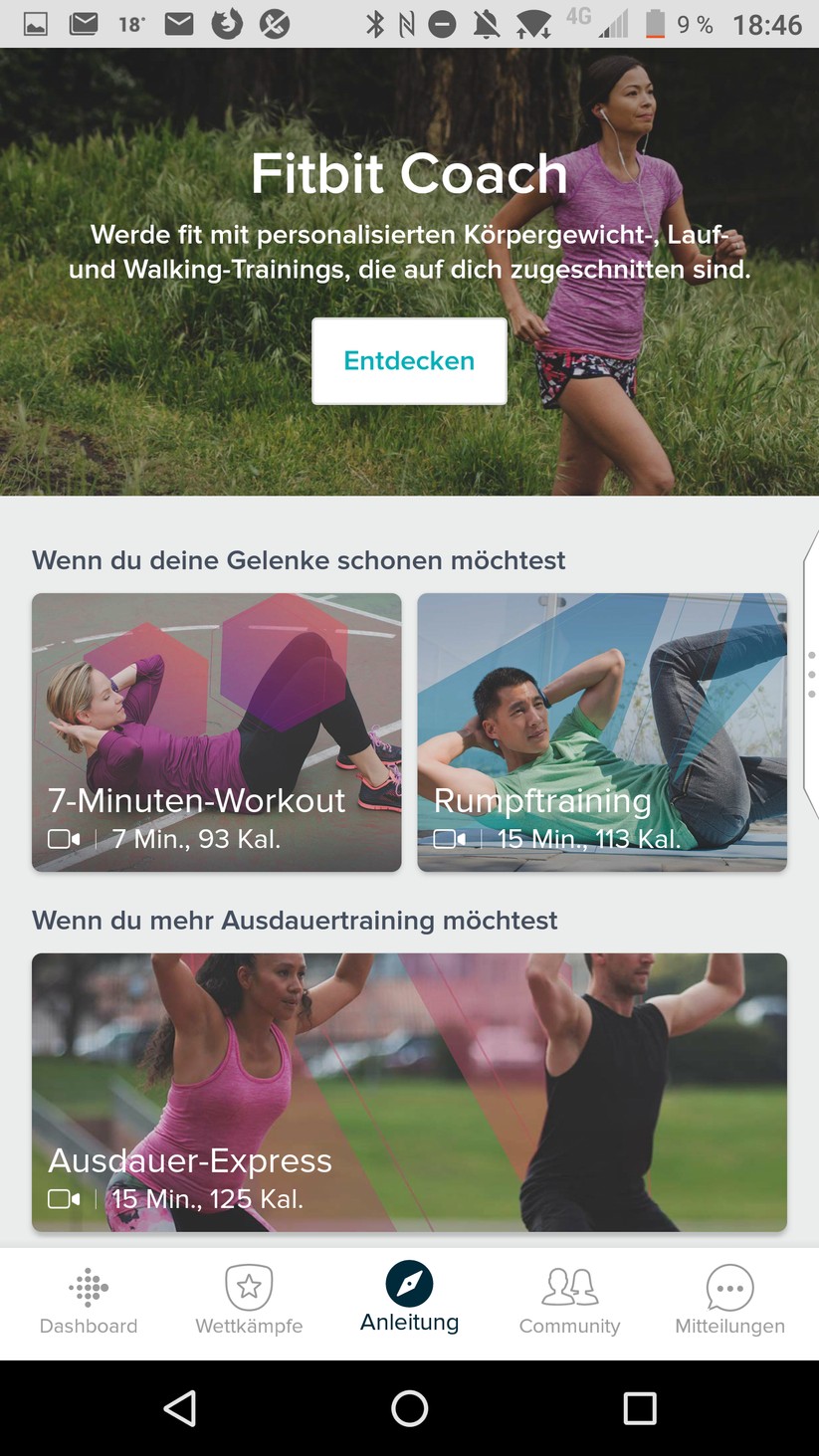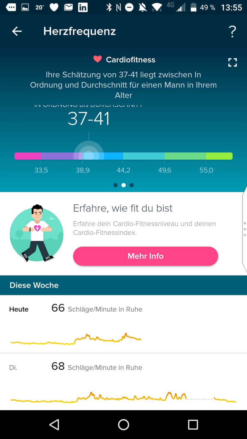 Zudem sammelt die Anwendung Daten zum Trinken und Essen. Diese Daten schaffen es leider nicht auf den Tracker, dabei wäre eine Erinnerung zum regelmäßigen Trinken fast genauso wichtig wie die Bewegung. Bislang gab uns nur die Samsung Gear Fit 2 Pro (Testbericht) die Option, die Wasseraufnahme mitzutracken.