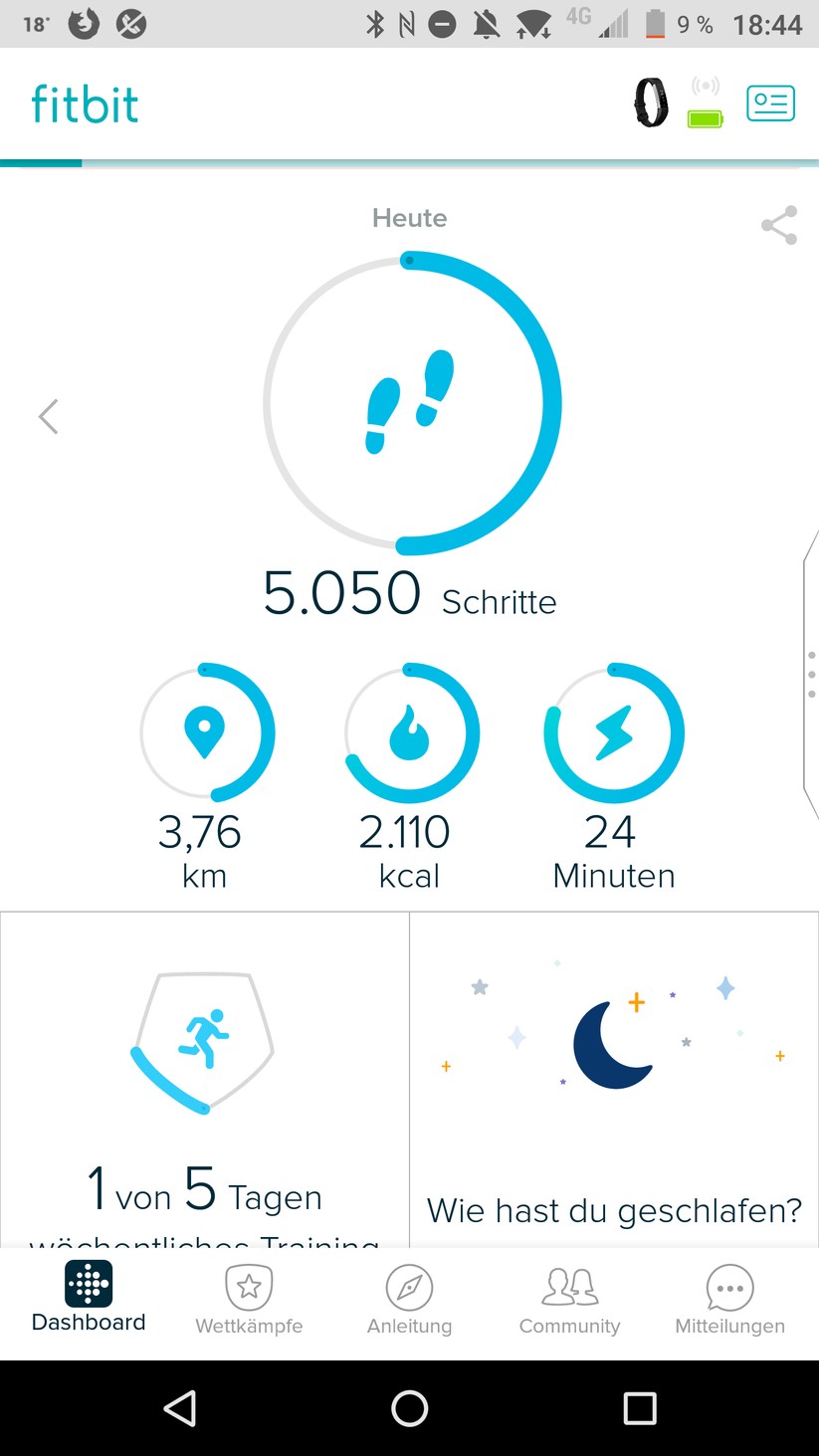 Die Fitbit-App hat uns in der Vergangenheit bereits gefallen und das hat sich nicht geändert. Sie ist simpel aufgebaut und zeigt dabei die wichtigen Daten übersichtlich an. Im Vergleich zum Huawei Band 2 Pro (Test) oder der Samsung Gear Fit 2 Pro (Test) reicht es auch völlig, eine App zu installieren. Keine Zusatzdienste verlangen nach Speicherplatz, so muss das sein. Für die Nutzung ist ein Konto bei Fitbit notwendig. Das nervt, wir hätten uns zumindest eine lokale Option gewünscht. Richtig lohnt sich dieses Konto sowieso erst, wenn mehrere Fitbit-Geräte im Einsatz sind. Wer etwa eine Fitbit Aria 2 Waage (Testbericht) besitzt, erhält sein Gewicht direkt zusammen mit den Bewegungsdaten in die App eingespielt.