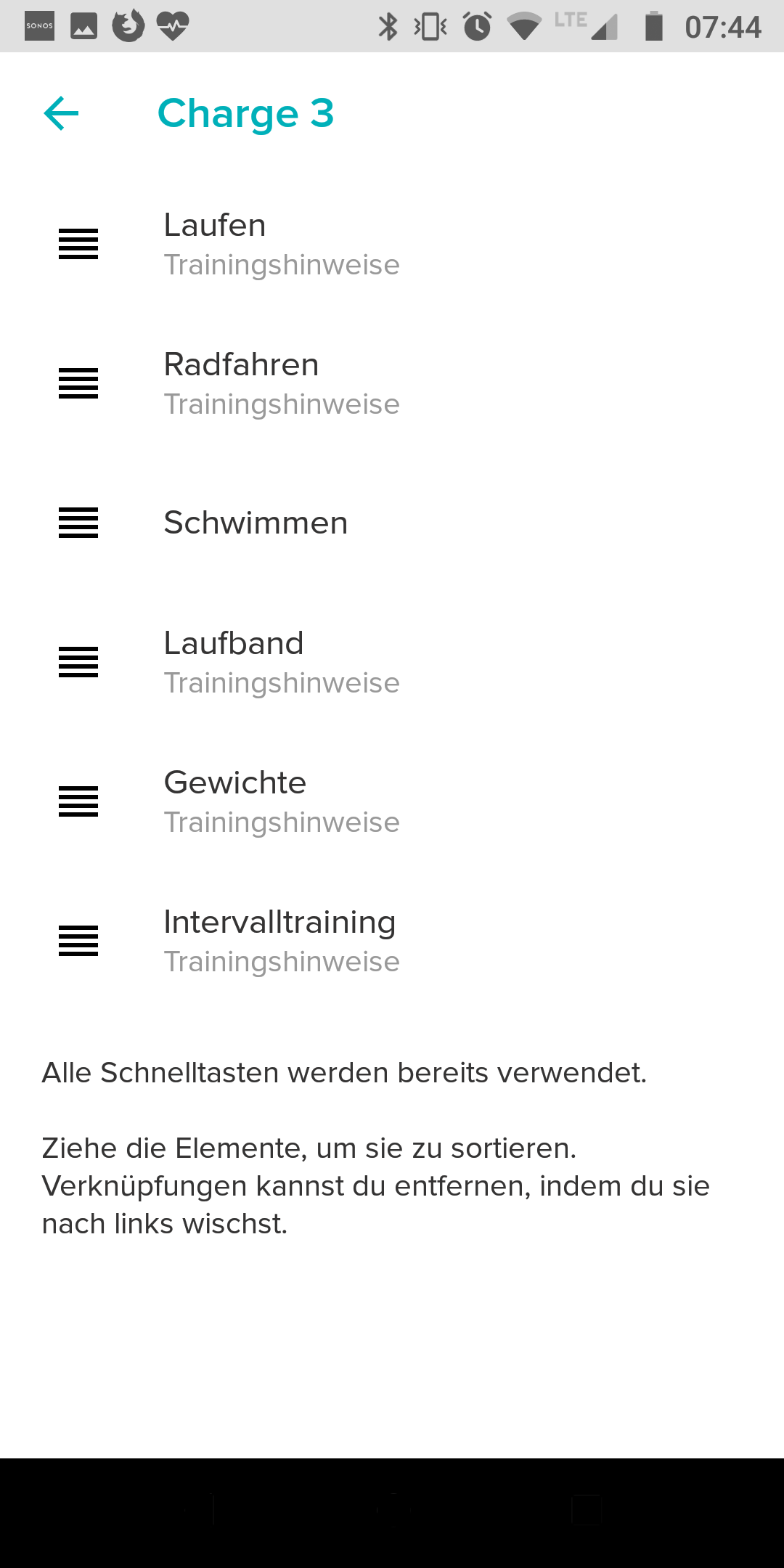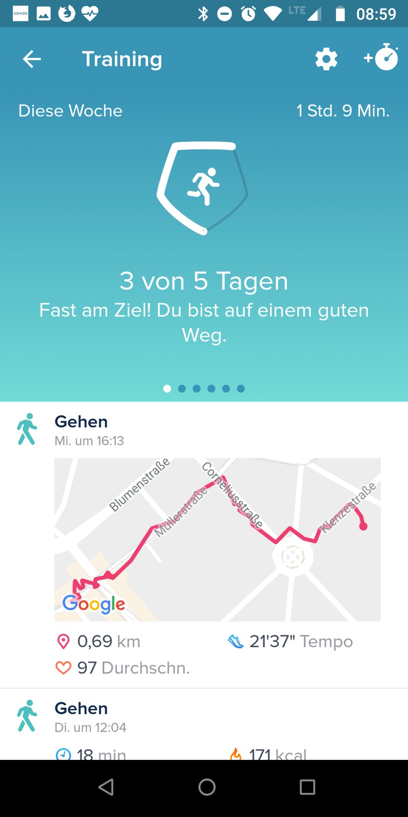 Im Training liefert der Charge 3 die Puls- und Bewegungsdaten, etwaige GPS-Koordinaten werden vom Smartphone gesammelt und in der App zusammengesetzt. Das funktioniert im Test gut. Der Tracker liefert 15 verschiedene Erkennungen für Sportarten mit, sechs davon kann man für den schnellen Zugriff auf dem Gerät ablegen. Dazu soll der Charge 3 automatisch erkennen, ob und welches Training man durchführt.