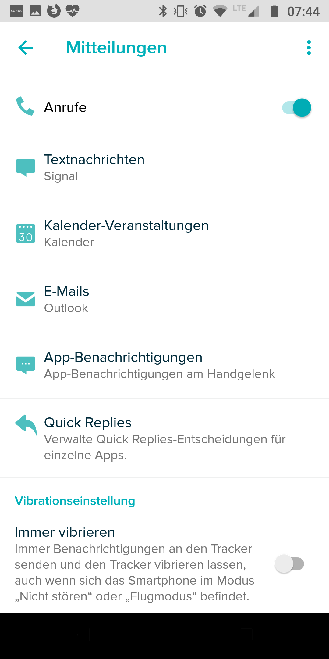 Auch hier gibt es wenig Überraschungen. Der Fitbit Charge 3 integriert sich ins Betriebssystem des Smartphones. Spannend ist, dass man zumindest auf Android genau festlegen kann, welche App wann benutzt wird. Auf dem Display erscheint die Information als kurzer Text. E-Mails zeigen etwa den Absender und lassen sich durch die ersten Sätze scrollen.