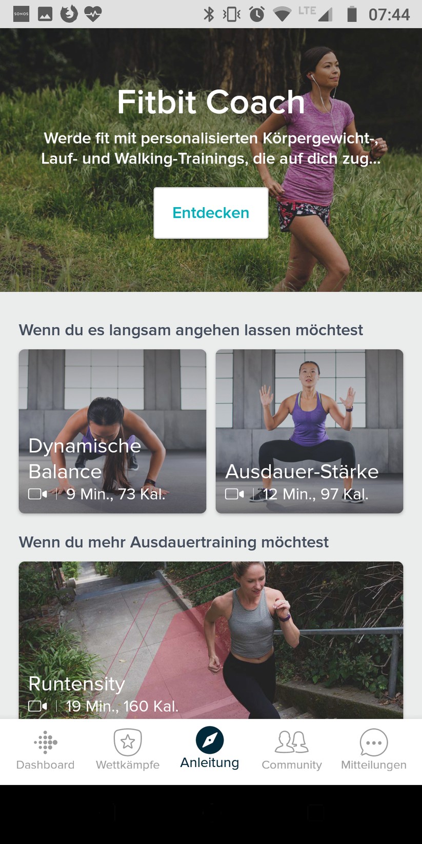 Fitbit liefert eine App für alle seine Geräte. Das hat den großen Vorteil, dass alle Funktionen für alle Produkte zur Verfügung stehen. Wie bereits bei den anderen Fitbit-Geräten (Übersicht) gefällt uns die App im Test sehr. Sie ist minimalistisch, ohne dabei auf Informationen zu verzichten. Ein Highlight ist auch hier die Auswertung des Schlafs, wenige andere Hersteller zeigen das so übersichtlich an.