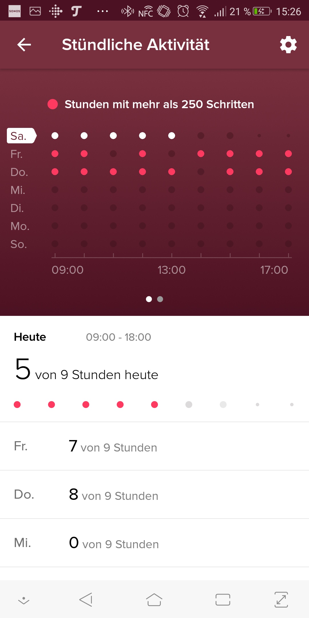 Die einfache Überwachung der Aktivität ist die Hauptaufgabe des Trackers und die erfüllt er gut. Gefühlt ist die Inspire HR aber sehr großzügig beim Aufzeichnen der Schritte. Nicht so, dass es besonders auffällt, aber man erreicht die Schrittziele leichter als etwa bei der Garmin Vivosport (Testbericht) .