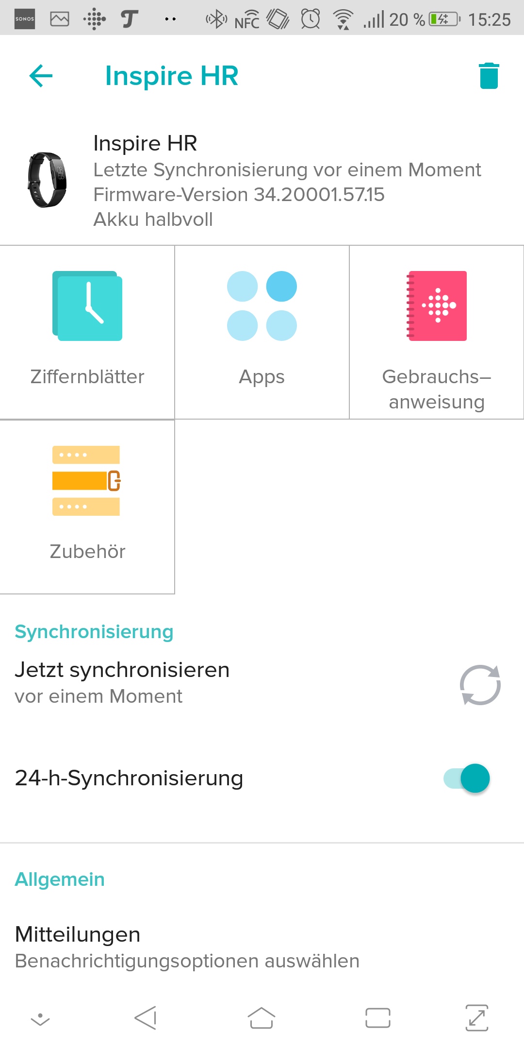 Der Tracker verbindet sich automatisch mit dem Smartphone. Wenn der Nutzer den Zugriff freigibt, bekommt die Inspire HR Informationen über neue Benachrichtigungen direkt aufs Display.
