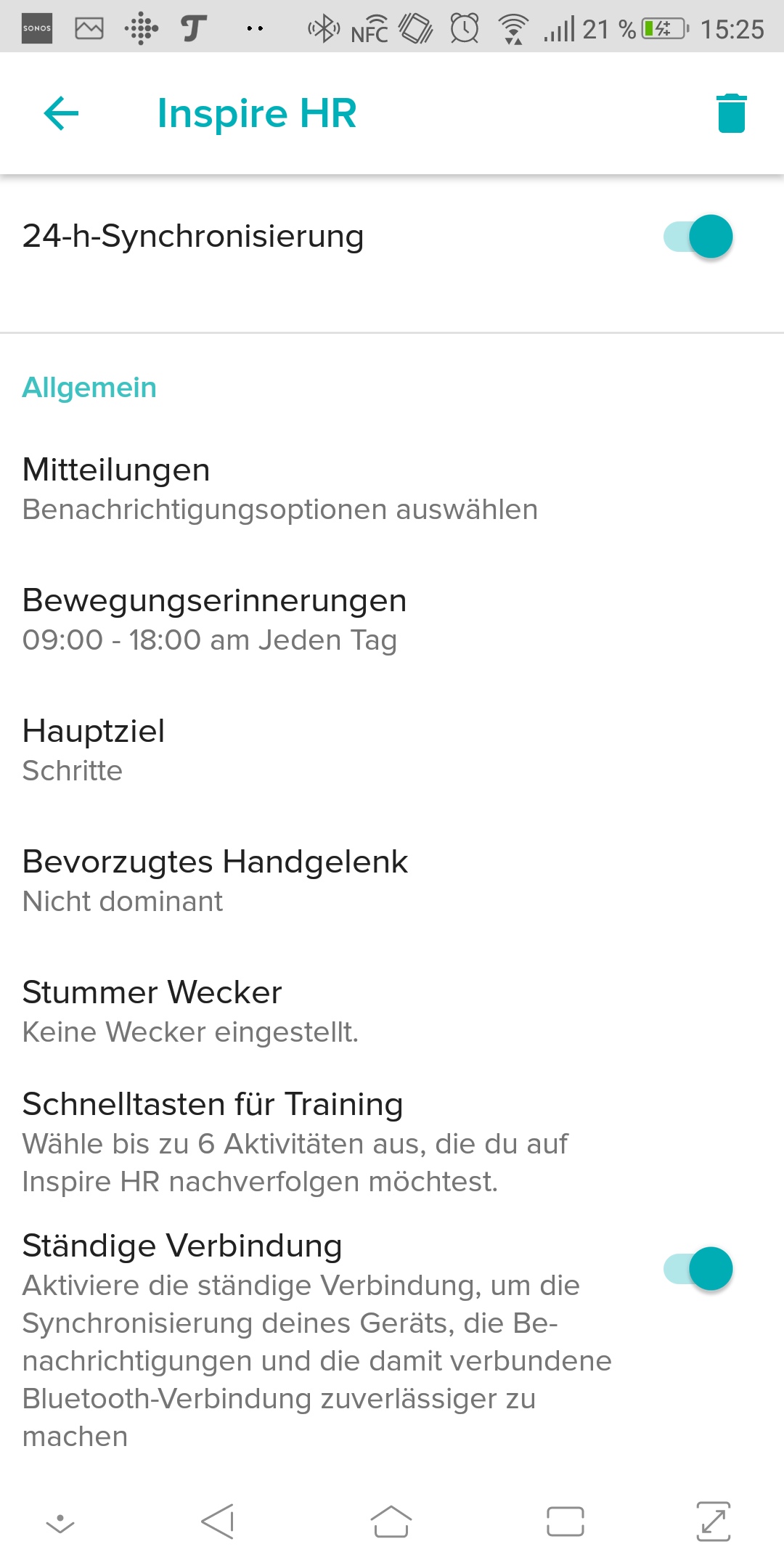 Auch erkennt die Inspire HR nicht, ob man Treppen steigt. Das wäre eine nette Erweiterung gewesen. Auch kann man immer noch nicht die Menge der getrunkenen Wassergläser direkt am Tracker eingeben.