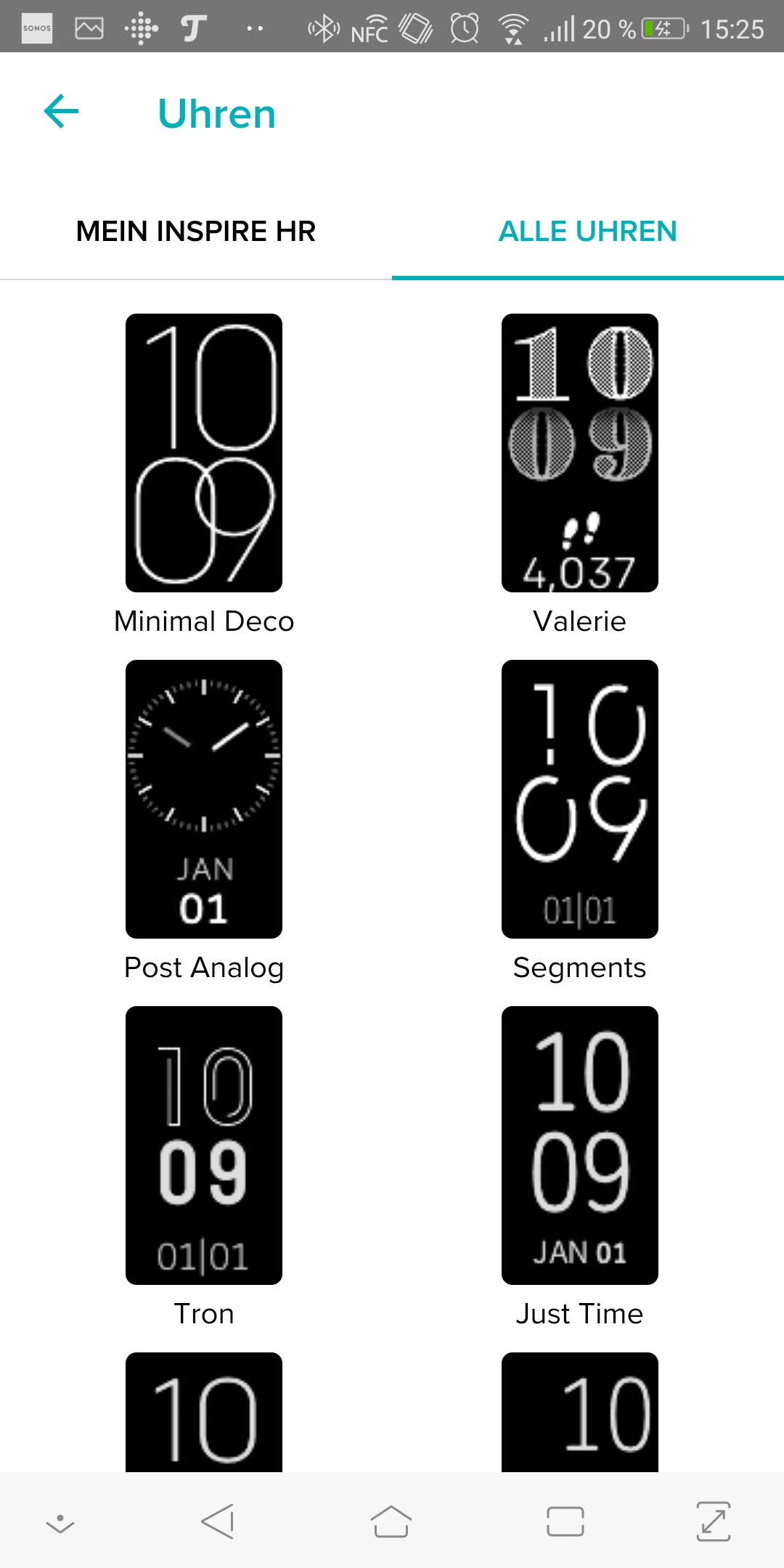 Die Konfiguration ist recht beschränkt, im Gegensatz zu anderen Geräten kann man nur wenig anpassen. Es gibt aber zehn verschiedene Designs für die Uhr zum kostenlosen Download. Anpassen kann man sie leider nicht.