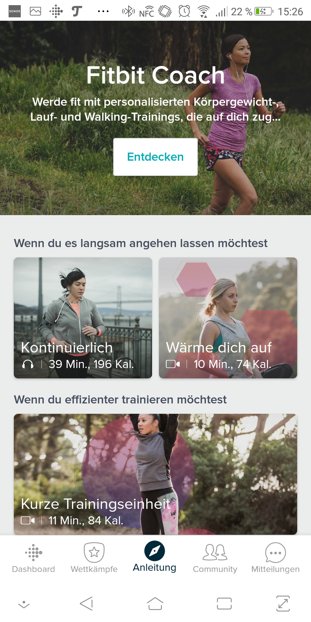 Wie auch bei der Fitbit Versa gibt es die virtuellen Wettkämpfe, in denen man sich mit anderen Nutzern messen kann. Wer Hilfe beim Training braucht, der kann den kostenpflichtigen Fitbit Coach abonnieren.