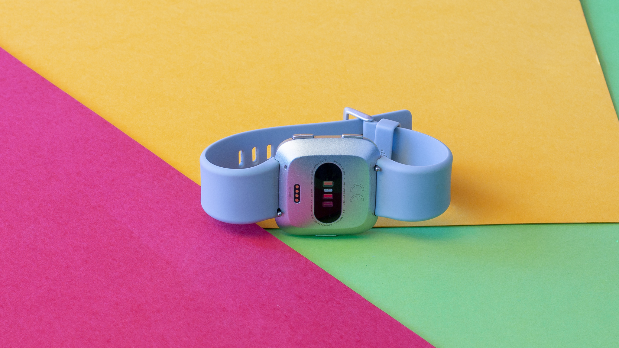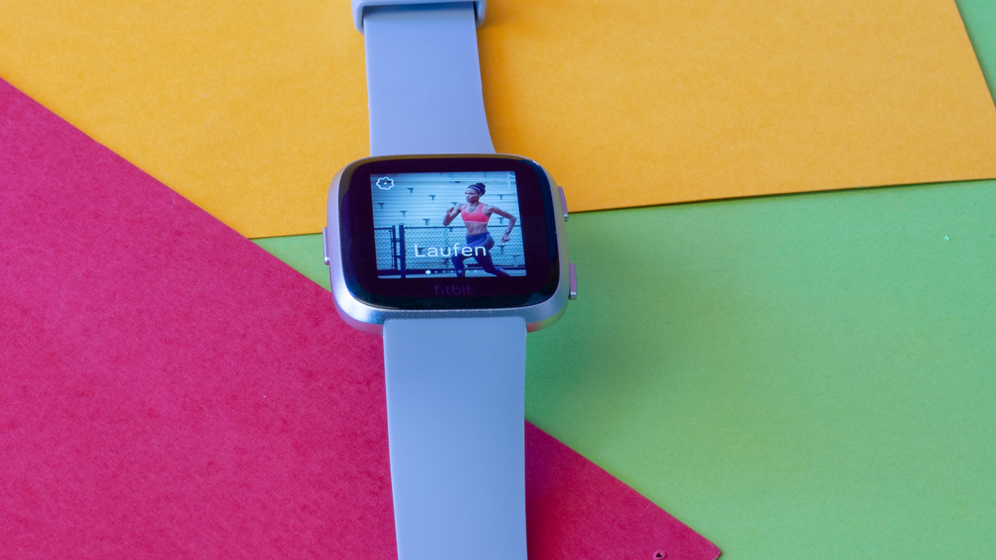 Vom Design erinnert die Versa an die erste Apple Watch, ist aber etwas kleiner und quadratisch. Im Test hatten wir die Version mit silbernem Aluminiumgehäuse, der Kontrast zwischen hellem Metall und dunklem Bildschirm kommt dabei gut zur Geltung. Alternativ gibt es noch Versionen mit schwarzem, grauen und rosé-goldenem Aluminium. Den 1,3 Zoll großen Touchscreen schützt eine Schicht aus Gorilla Corning Glass 3 vor Kratzern. Die Uhr sitzt fest am Handgelenk, war aber im Test angenehm zu tragen.