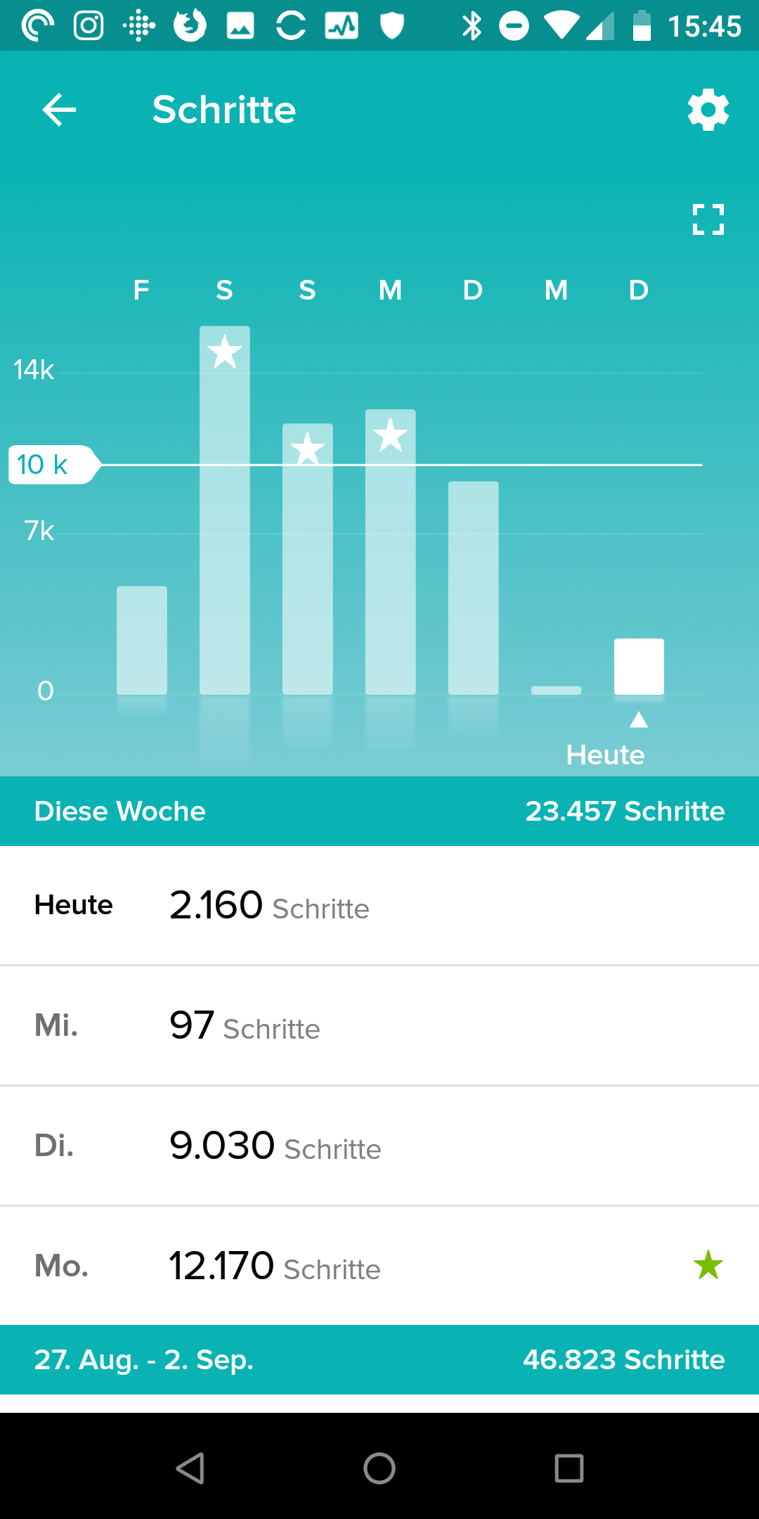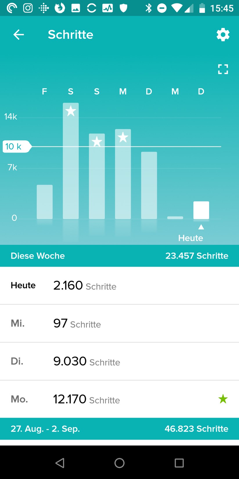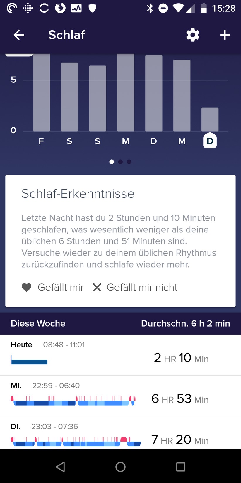 Ein Klick auf eine der Informationskacheln führt zu weiteren Daten. So sieht man beispielsweise, an welchem Tag man wie viele Schritte zurückgelegt hat oder wie gut man geschlafen hat. All das ist sinnvoll aufbereitet, Fitbit hat eine angenehm übersichtliche App.