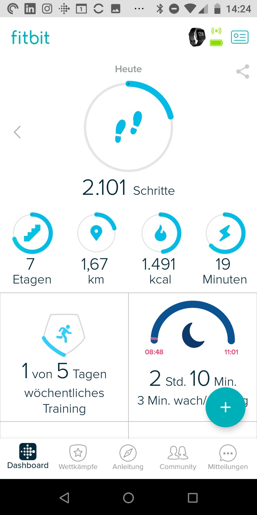 Die Fitbit-App zeichnet sich durch ihre Einfachheit aus. Das Design ist ansprechend und überfordert den Nutzer nicht mit Informationen. Ja, es ist ein Account notwendig und ja, Daten gehen in die Cloud, um dort aufbereitet zu werden. Wer das nicht möchte, sollte gleich zu einem anderen Gerät greifen. Die Suunto 3 Fitness (Testbericht) etwa bietet die Grundfunktionen auch ohne Online-Konto an.