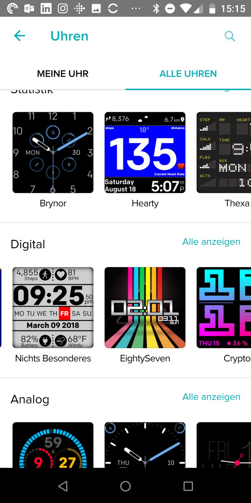 In der App lassen sich neue Uhrenoberflächen und Anwendungen finden und installieren. Das funktioniert sehr gut, der Fitbit-Store ist deutlich aufgeräumter und übersichtlicher als etwa die Samsung-Variante bei der Gear Fit 2 Pro (Testbericht) . Gerade bei den Uhrenoberflächen gibt es einige sehr coole Alternativen zur Standard-Anzeige. Per Klick werden sie heruntergeladen und installiert. Etwas nervig ist, dass die App die letzten Designs nicht speichert, wer schnell wechseln will, muss sie immer wieder neu herunterladen.