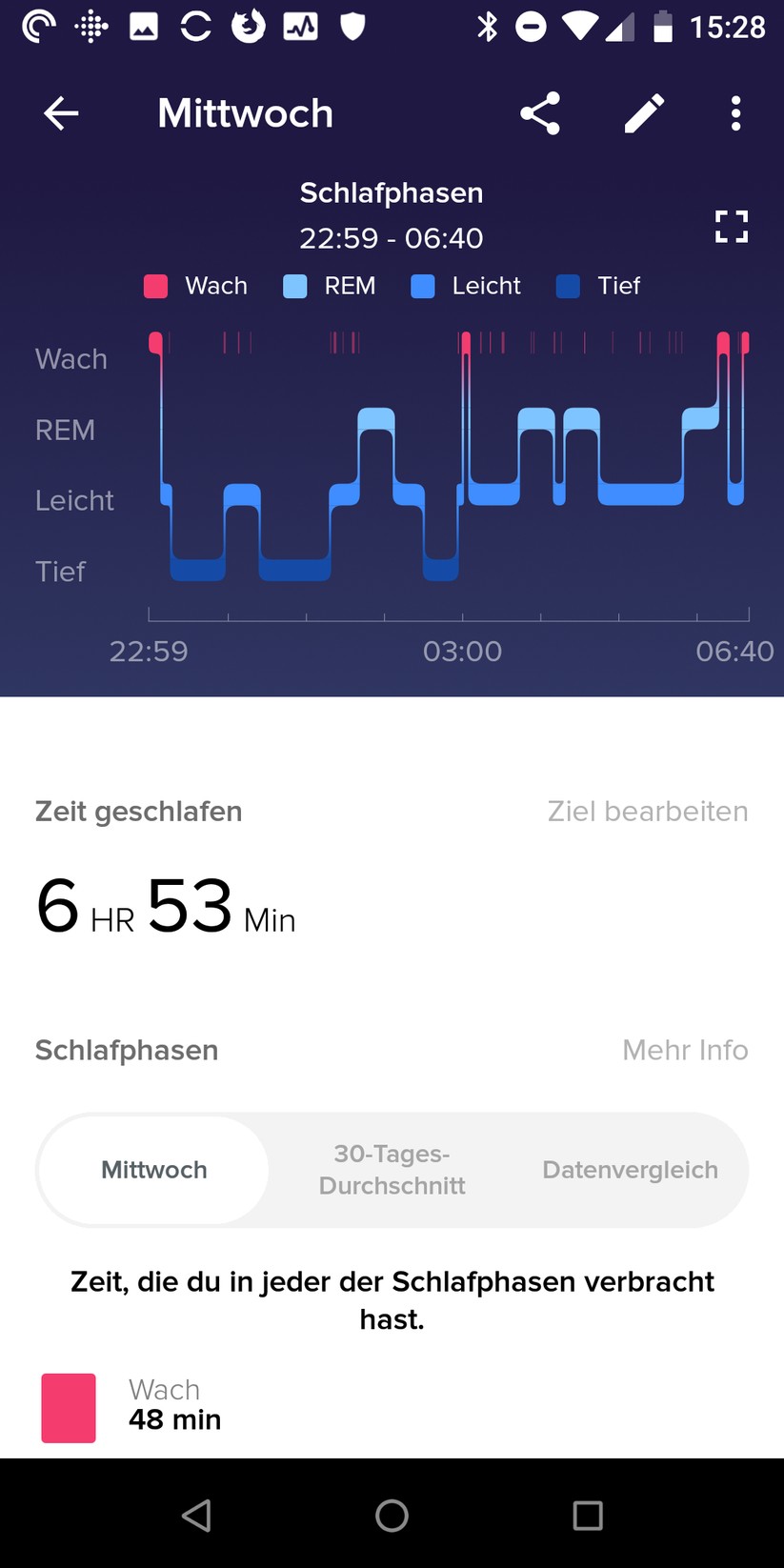 Die Schlafüberwachung im Versa ist sehr gut. Die Uhr misst nachts automatisch, die App bereitet dann die Informationen zum Einschlafen, Aufwachen und den verschiedenen Schlafphasen im Detail auf. Wie bei den anderen Geräten ist es schwer, die Daten ohne ein Schlaflabor zu überprüfen. Dennoch liefert die App einen guten Überblick zu den langfristigen Trends. Gerade das Thema Einschlafen und nächtliche Unruhe zeigt sich in der App schön.