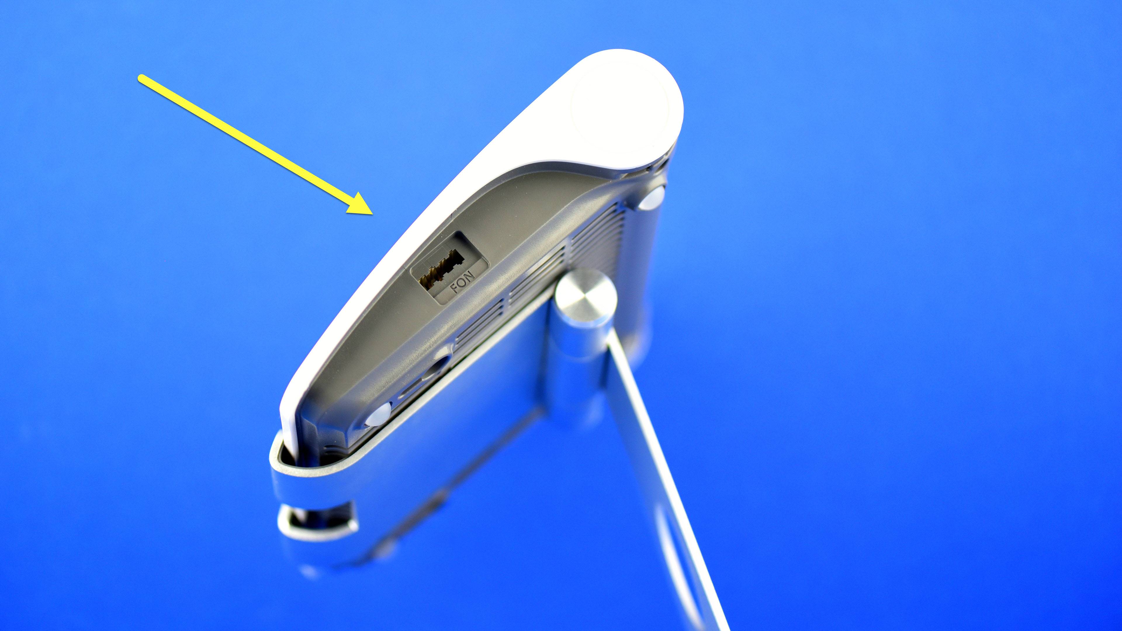 Ein Blick in die technischen Daten zeigt gleich, warum das Gerät so günstig über die Ladentheke geht, denn AVM hat ordentlich gespart. Zwar gibt es ein DSL-Modem mit VDSL2 Supervectoring mit 300 MBit/s. Dazu gibt es allerdings nur einen Gigabit-LAN-Port und einen USB-2.0-Anschluss. Hinten links sitzt die DSL-Buchse. Von hier führt das mitgelieferte DSL-Kabel zur NFN-Dose der Deutschen Telekom, aus der das All-IP-Internet samt Voice-over-IP von Telekom, 1&1, Vodafone, O2 oder anderen Providern in die 7510 eingespeist wird. Gleich rechts neben der DSL-Buchse sitzt die zweite FON-Buchse, jetzt aber im Format RJ11. Vorsicht: In Betrieb darf nur eine der beiden FON-Buchsen belegt sein.