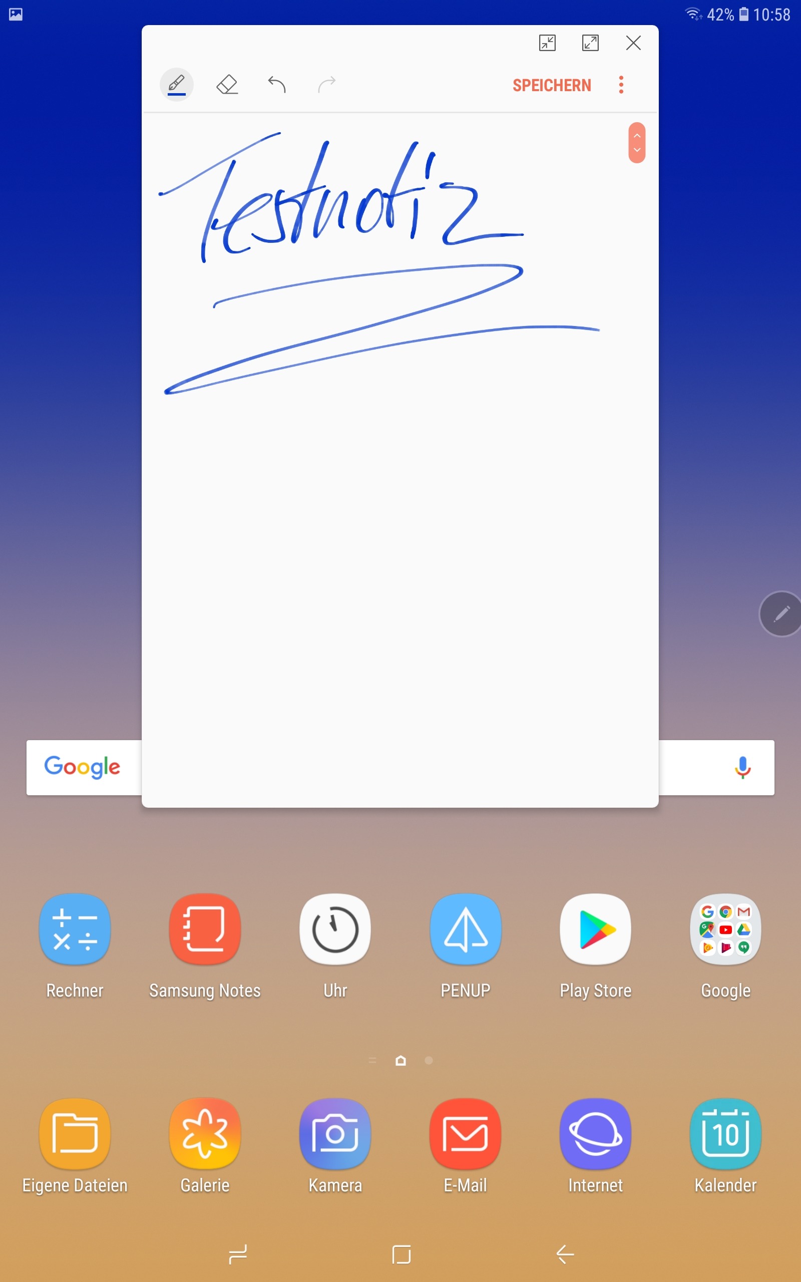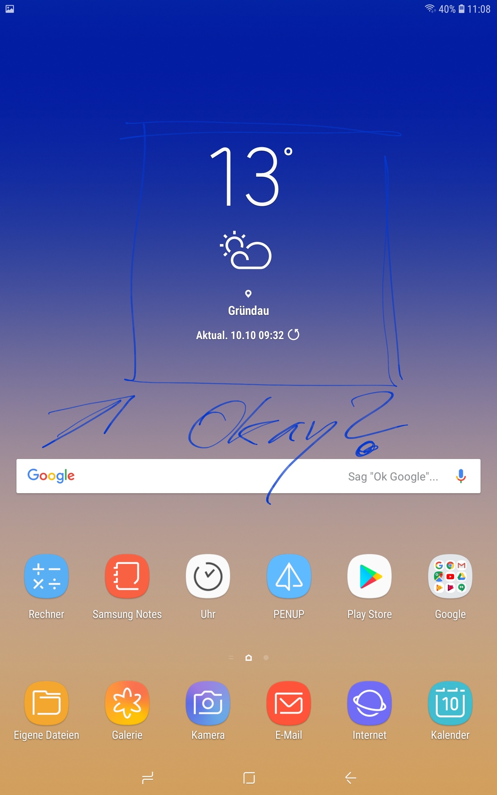 Bezüglich des S-Pen getauften Stylus gibt es einiges an zughöriger Software, unter anderem eine App zum Zeichnen und eine Notiz-Applikation. Für schnelle Notizen oder das Erstellen von Screenshots von bestimmten Bereichen auf dem Display genügt es ein entsprechendes Schnellzugriffsmenü durch Drücken eines Knopfes am Stylus, oder per Floating-Shortcut auf dem Display aufzurufen. Der Stylus reagiert präzise und gibt dem Nutzer das Gefühl mit einem „echten“ Stift auf dem Display zu zeichnen und zu schreiben. Die verschiedenen von Samsung gebotenen Features wie Screenshot-Notizen, Notizen bei ausgeschaltetem Bildschirm schreiben zu können oder Live-Nachrichten mit bewegtem Inhalt haben sich uns im Test als praktische Sache gezeigt. Mit dem S-Pen zu arbeiten macht richtig Spaß, der Stylus bietet in unseren Augen einen großen Mehrwert.