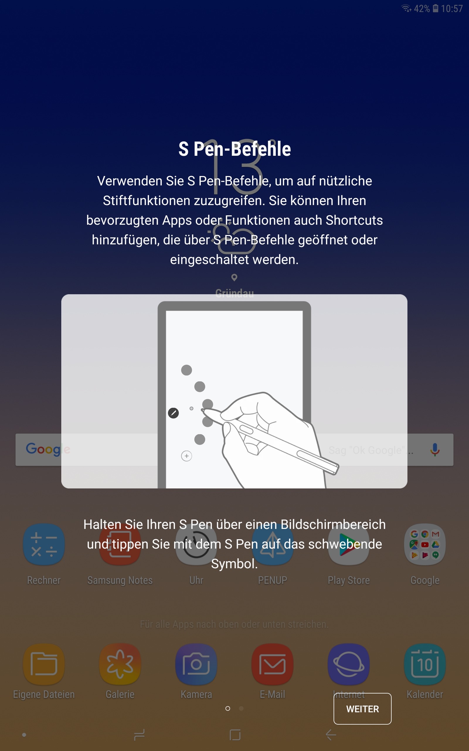 Zum Lieferumfang des Tablets mit Stylus-Unterstützung gehört ein entsprechender Stift, der S-Pen. Er unterstützt 4.096 Druckstufen. Bei der Konkurrenz ist ein solches Gadget in der Regel optional und mit Mehrkosten verbunden. Hier zeigt sich Samsung kundenfreundlich. Optional hingegen ist eine andockbare Tastatur, die uns zum Test leider nicht zur Verfügung stand. Sie kostet knapp 150 Euro extra.
