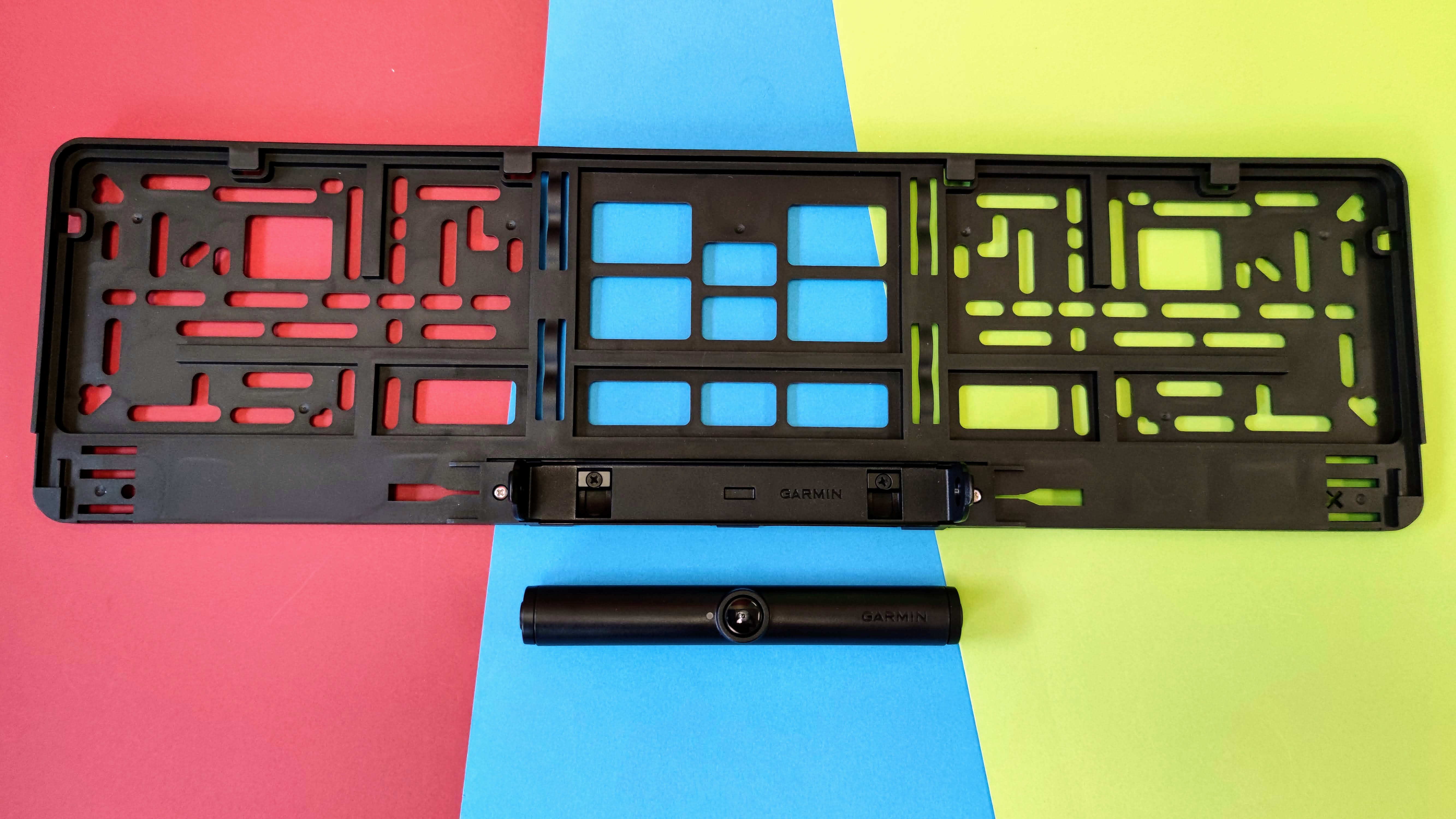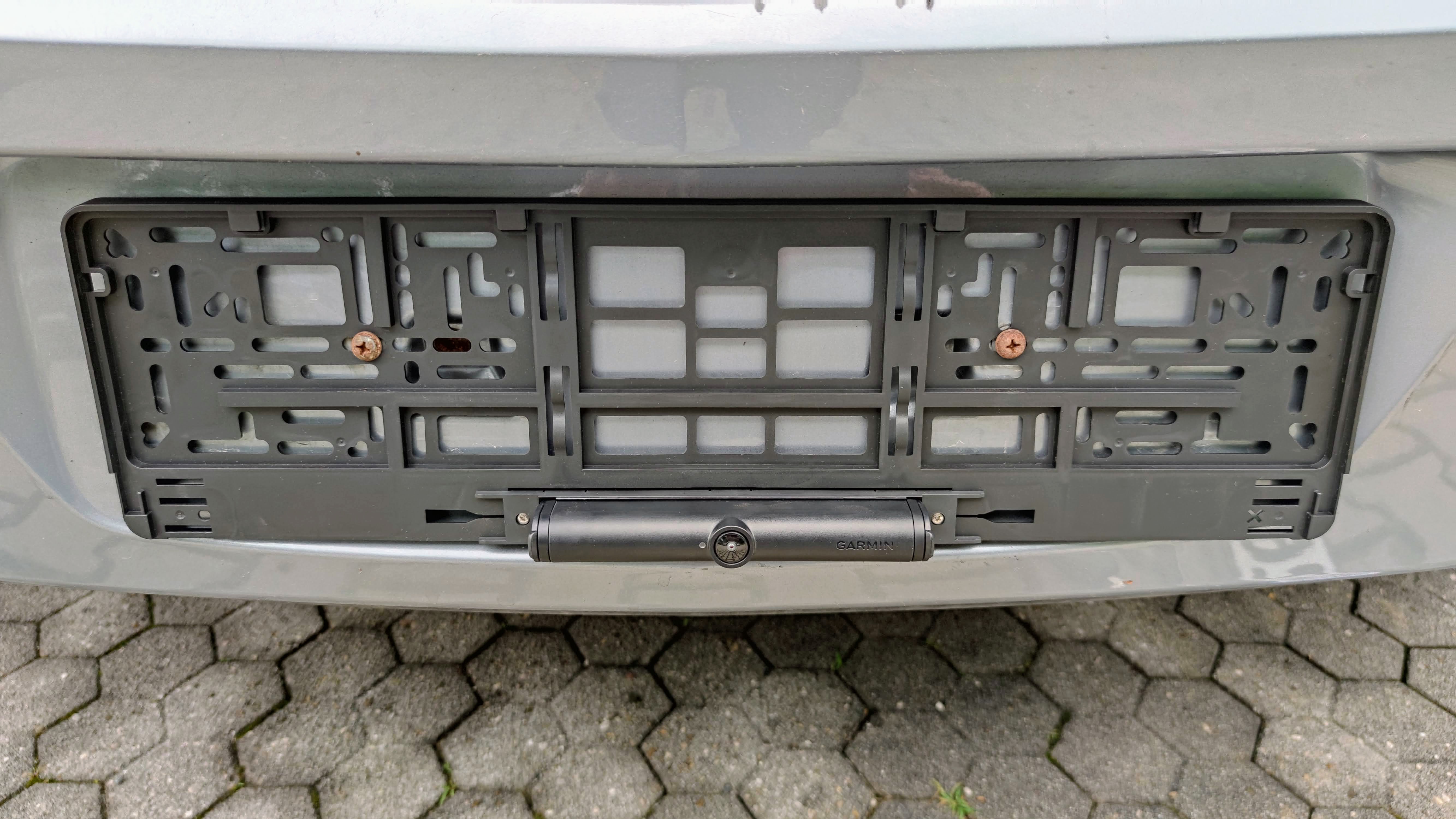 Vor der Montage entfernt der Fahrzeughalter die Halterung mit dem Nummernschild und schraubt anschließend die mit der Rückfahrkamera gelieferte Kennzeichenhalterung ans Auto. Diese bietet viele Öffnungen und Löchern – das macht es einfach, den passenden Abstand für die vorhanden Schraublöcher zu finden. Das dauert insgesamt keine fünf Minuten. Jetzt setzt man zwei Batterien in die Rückfahrkamera ein und klemmt diese unter das Nummernschild in die Halterung. Eine blaue Leuchte neben der Kamera blinkt für zwei Minuten. Das ist ein Zeichen dafür, dass die BC40 sich im „Pairing-Modus“ befindet und bereit zum Koppeln mit einem kompatiblen Garmin-Navi ist. Falls das Navigationsgerät die Kamera nicht von allein erkennt, funktioniert das manuell über Einstellungen > Drahtlose Kamera > Neue Kamera hinzufügen.