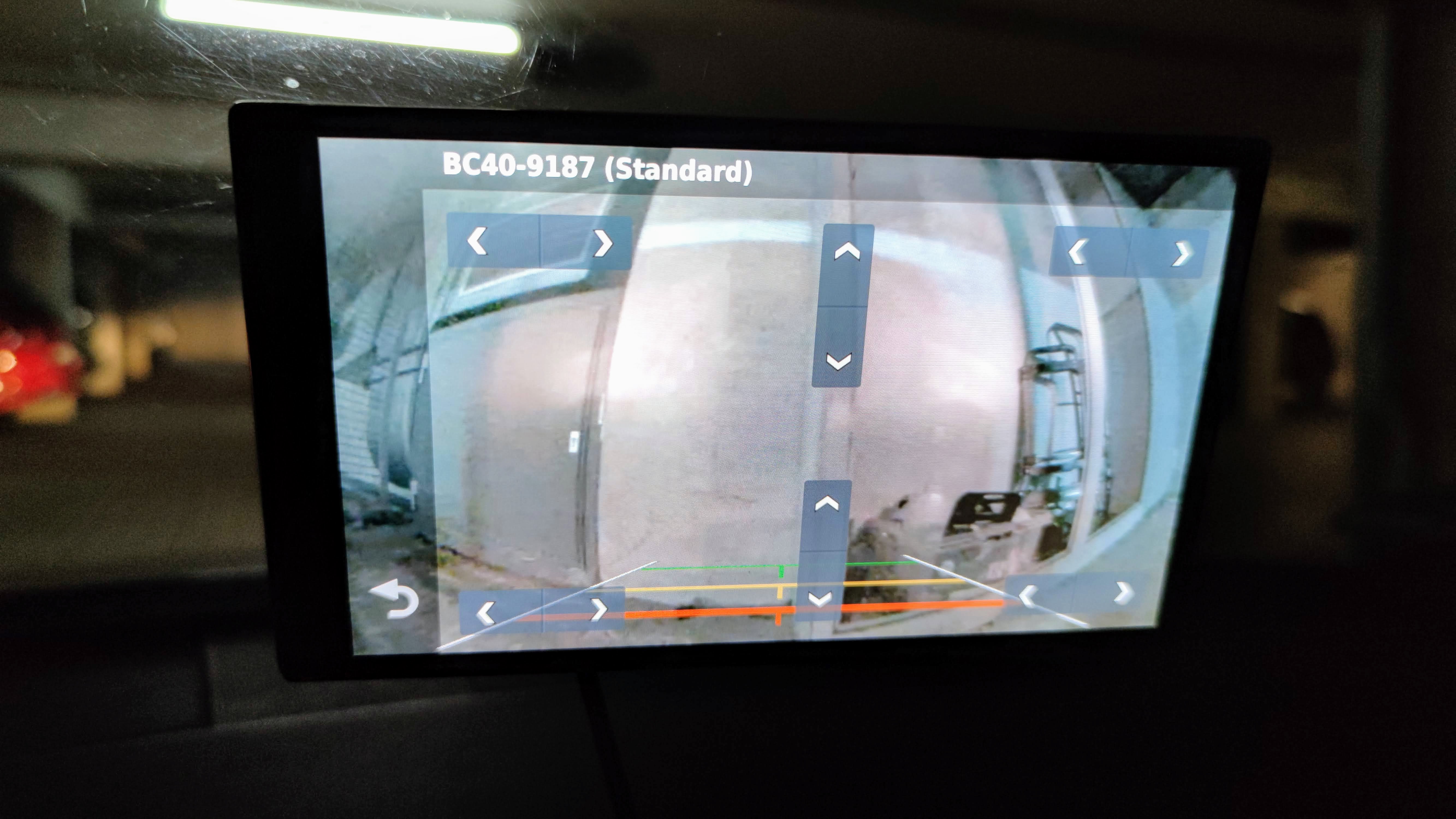 Das Kamerabild selbst zeigt den Bereich hinter dem Auto mit zusätzlichen Hilfslinien in Grün, Gelb und Braun. Diese sollte man nach der Aktivierung unbedingt von Hand in den Einstellungen des Kamerabilds anpassen. In unserem Fall ragten die Linien aufgrund einer leichten Schräglage des Nummernschildes bis weit nach oben in das Bild hinein. Durch die Weitwinkellinse der BC 40 wirkt das Bild leicht verzerrt. So erzeugte bei unserem Test das Kamerabild den Eindruck, kurz vor einem Mauervorsprung zu stehen. Nach dem Ausstieg stellten wir fest, dass noch ein halber Meter zwischen dem Heck des Autos und der Mauer war – besser so als umgekehrt. Beim Test in einer Parklücke hingegen sollte man auf das Kamerabild achten, tieferliegende Objekte wie eine Stoßstange zeigt das Bild näher an. Es erfordert schon ein wenig Übung, bis man die Hilfslinien passend eingestellt hat und den Abstand hinter dem Fahrzeug gut einschätzen kann.