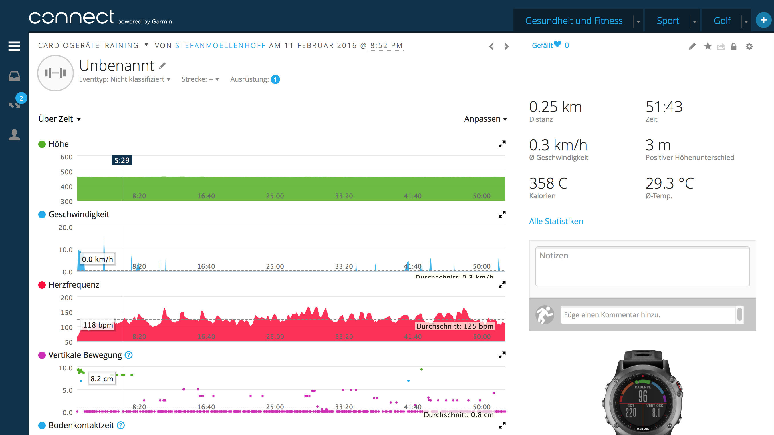 Weiterhin gibt es auch einen Inaktivitätsalarm, der sich meldet, wenn man sich zu lange den Hintern plattsitzt – oder aber auch weitgehend unbewegt herumsteht.