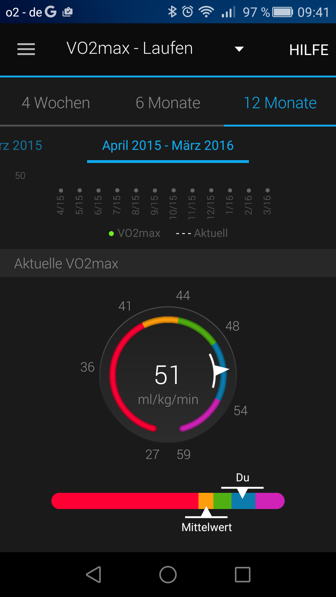 Schlussendlich misst die Fenix 3 mit dem HRM-Run auch noch die Ausdauerleistungsfähigkeit, nämlich in Form des VO2max-Wertes, gesondert fürs Laufen und fürs Fahrradfahren. Der VO2max-Wert gibt Aufschluss über die maximale Sauerstoffmenge, die der Körper unter Belastung in die Muskeln transportieren kann. Im Anschluss an die Workouts bekommt man auch noch eine individuelle Empfehlung für die Regenerationszeit.