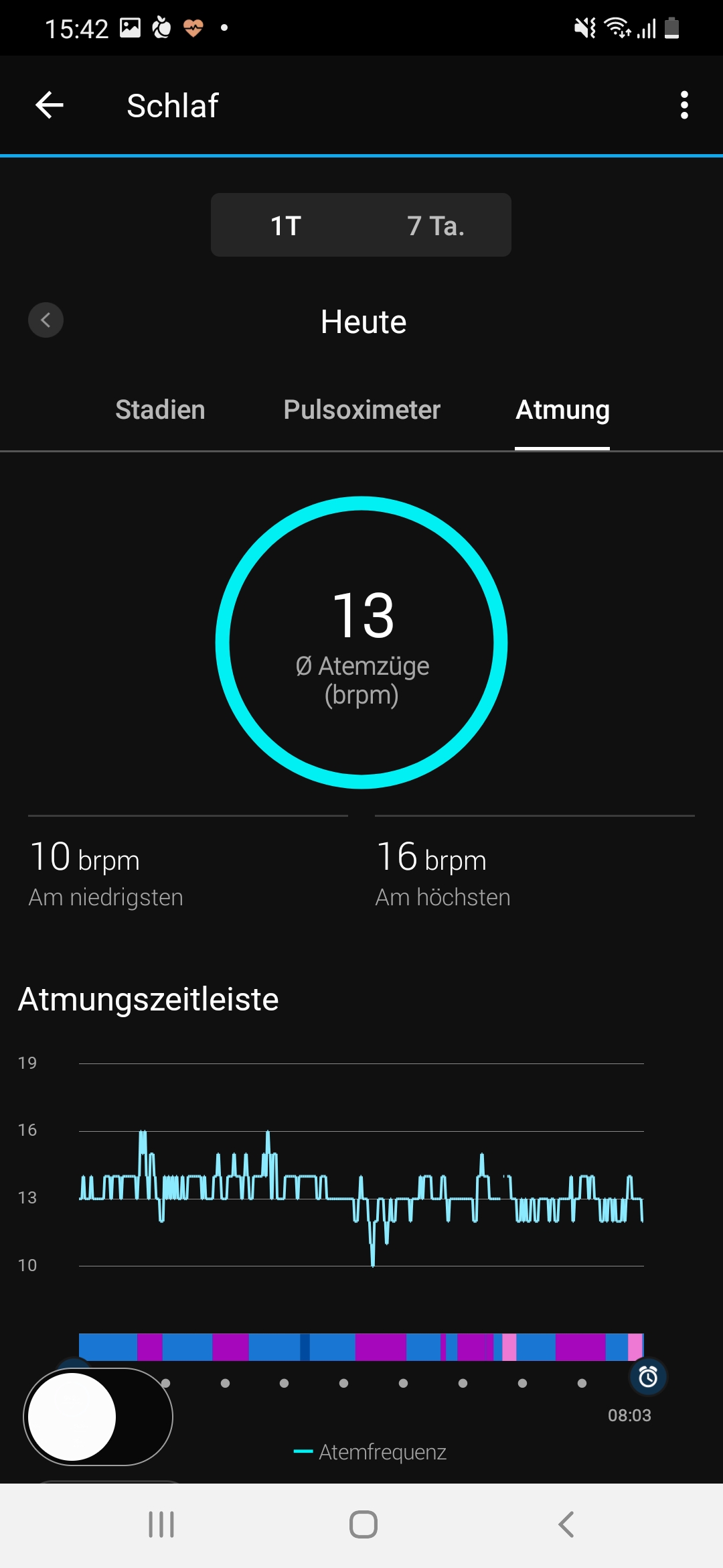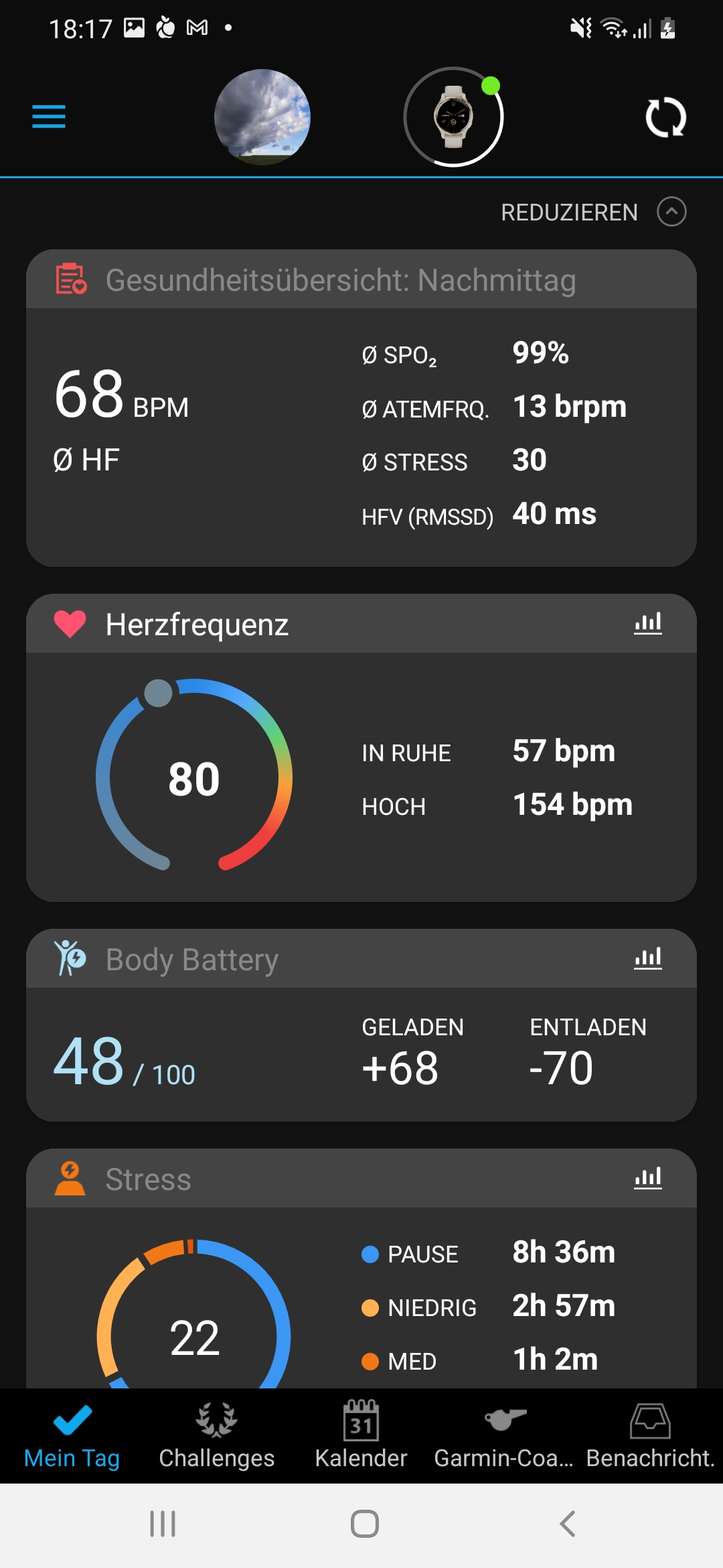 Die Venu 2 misst neben der Pulsfrequenz weitere Werte wie Atmung und Blutsauerstoffsättigung. Wir können anhand dieser Werte unseren Stresslevel analysieren und auf Wunsch eine Atemübung über das Display der Uhr starten, um uns zu entspannen. Die Atemübungen haben sich im Test aber eher als Spielerei herausgestellt – wer wirklich zur Ruhe kommen möchte und sich gestresst fühlt, ist im Zweifelsfall mit einer geführten Meditation besser bedient.