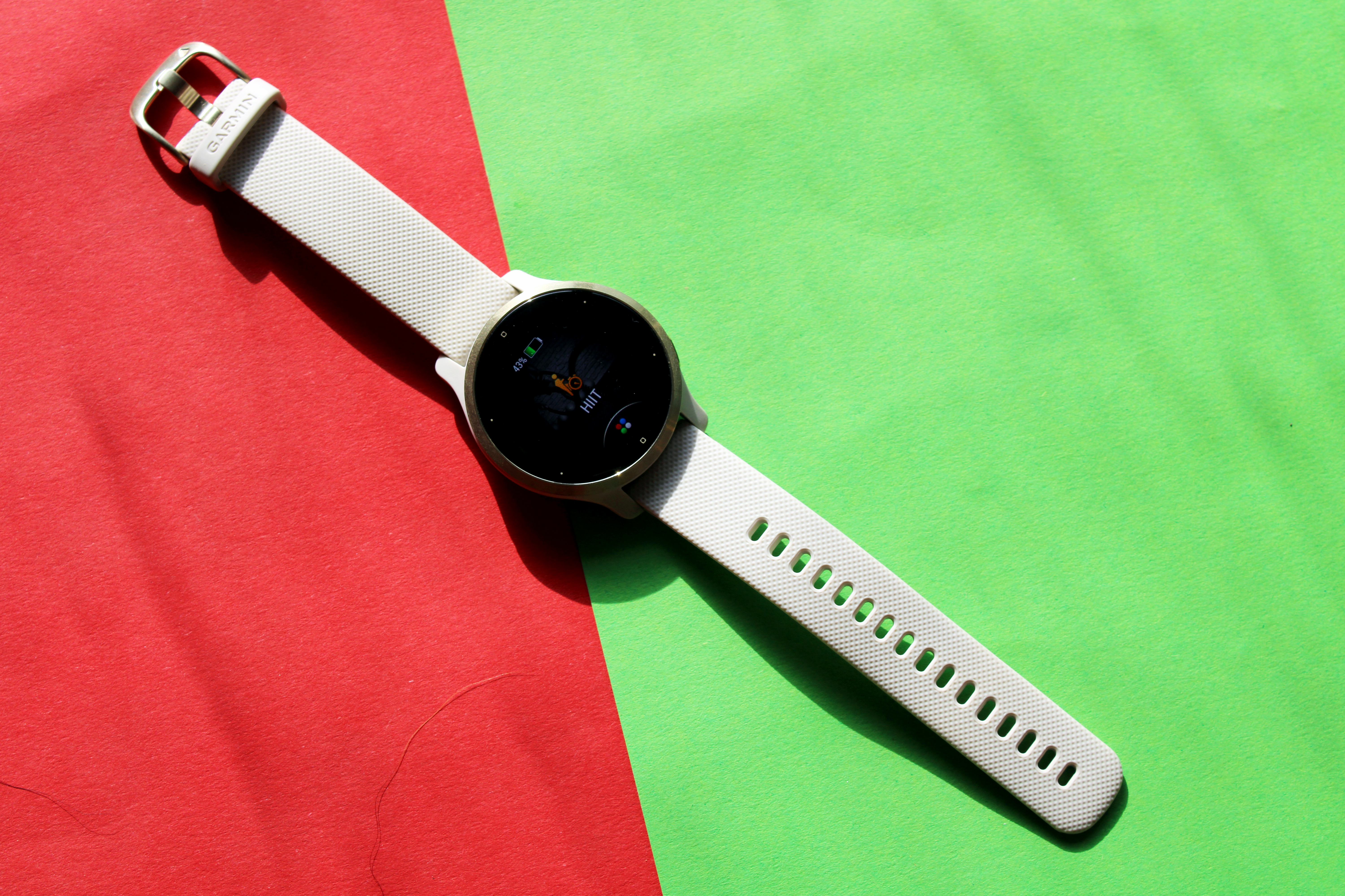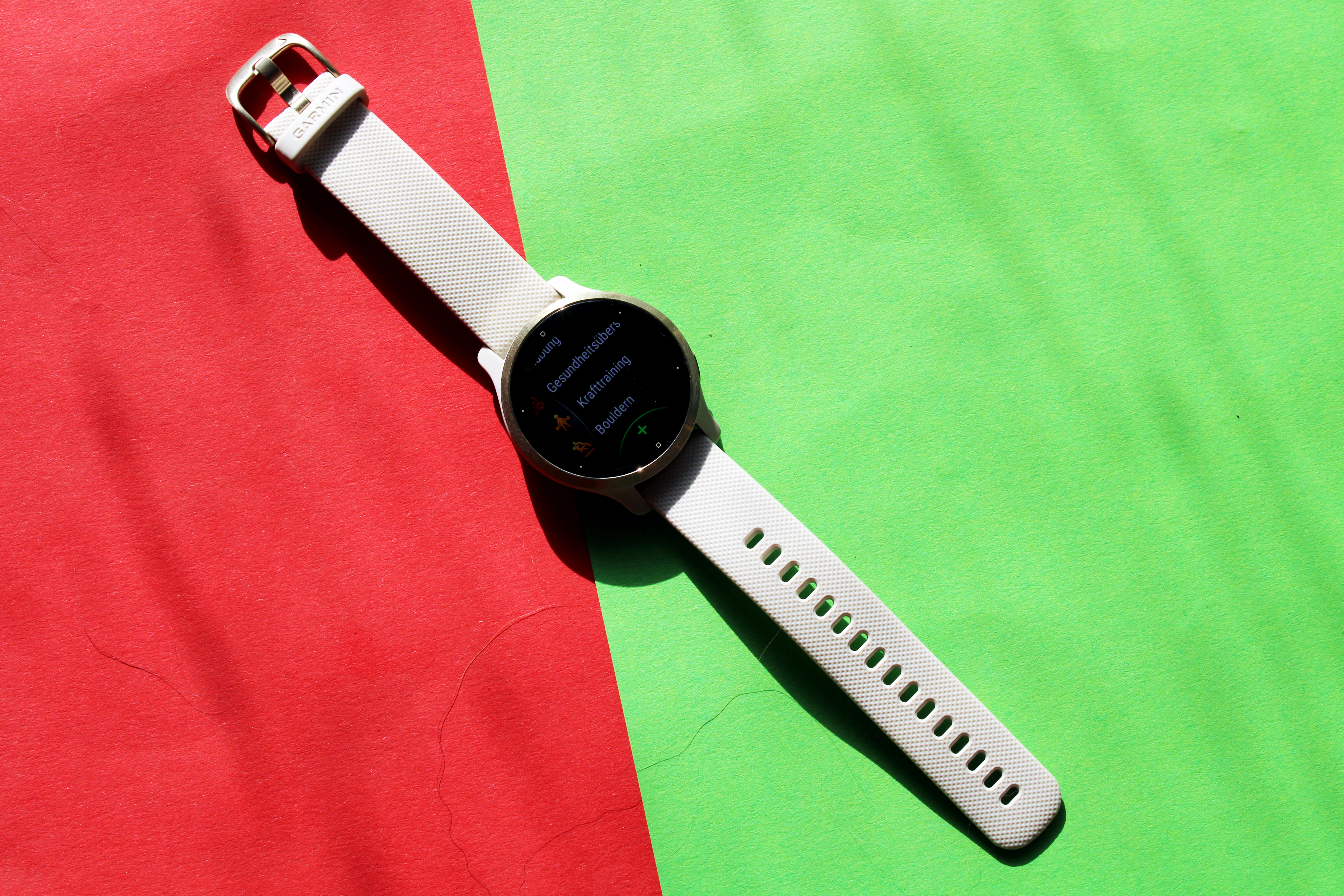 Der Bildschirm der Venu 2 setzt auf ein AMOLED-Display mit Gorilla Glass 3, das sich im Test als widerstandsfähig und kratzfest erwies. Die Helligkeit der Anzeige lässt sich in drei Stufen regeln, wobei die höchste Helligkeitsstufe zulasten der Akkulaufzeit geht. Das Display lässt sich unter beliebigem Lichteinfall gut ablesen – auch bei direkter Sonneneinstrahlung konnten wir die Anzeige gut erkennen. Wer möchte, kann im Systemmenü der Uhr festlegen, wie schnell sich das Display der Uhr abschalten soll. Diese Einstellung beeinflusst ebenfalls die Akkulaufzeit.