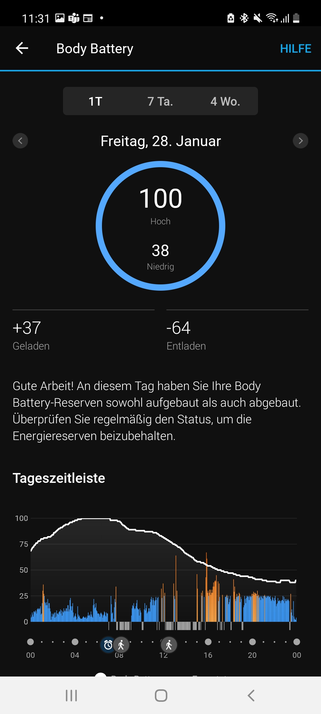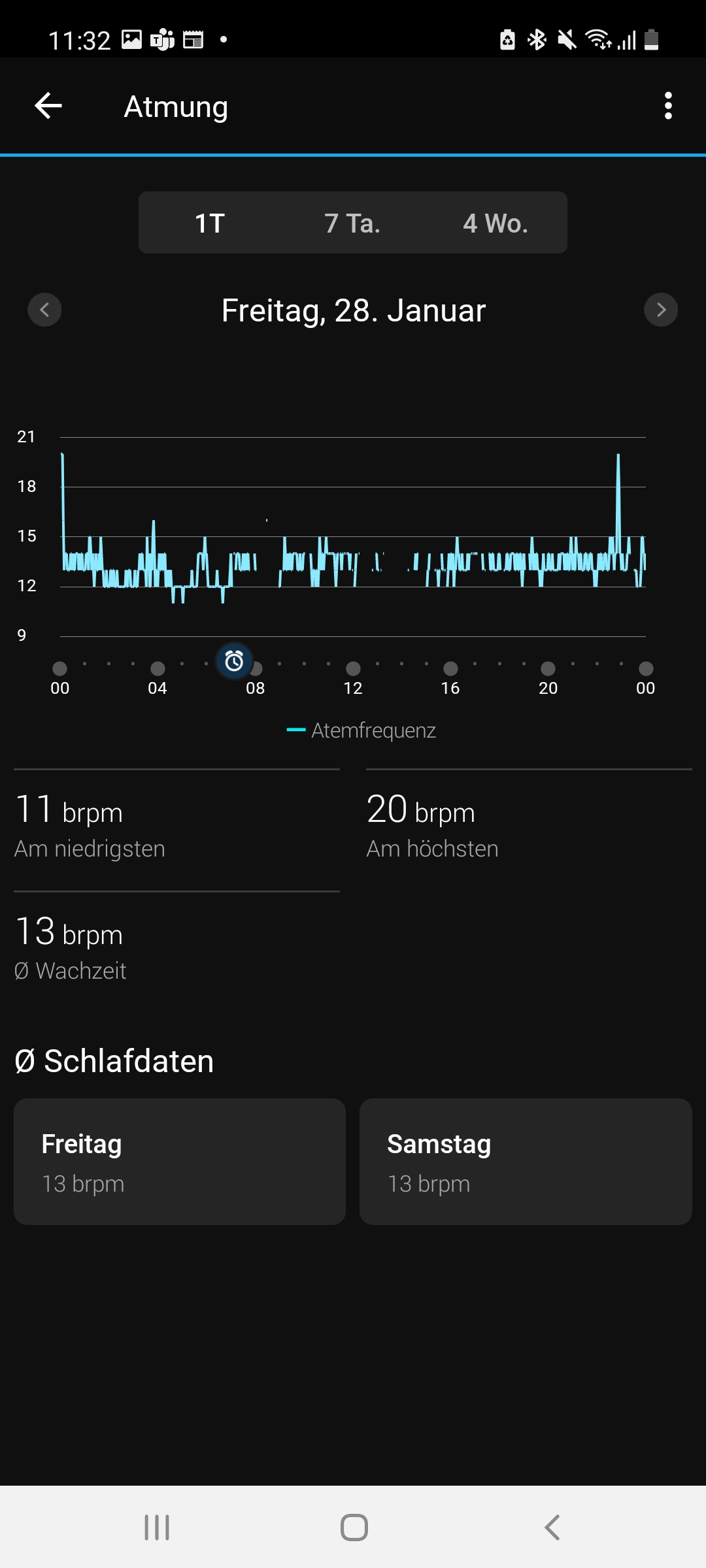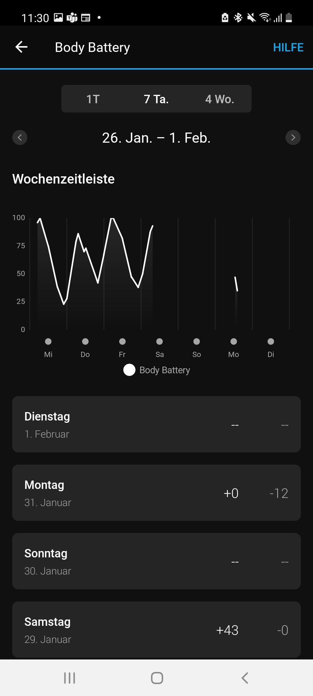Eine Tracking-Funktion für den eigenen Schlaf darf selbstverständlich auch bei der Venu 2 Plus nicht fehlen. Auch hier gibt es keine nennenswerten Unterschiede gegenüber der Venu 2: Die Uhr zeichnet Daten wie Schlafstadien und ihre Dauer, Herzfrequenz, Blutsauerstoffsättigung, Atemfrequenz und Stresslevel auf. Auf Basis dieser Daten berechnet sie dann einen Schlafscore, der auf einer Skala von 1 bis 100 die Qualität unseres Schlafs bewertet. Außerdem zeigt die sogenannte Body Battery unseren Erholungszustand an. Je nachdem, wie wir geschlafen haben, macht uns die App konkrete Empfehlungen, wie wir unseren Schlaf verbessern können.