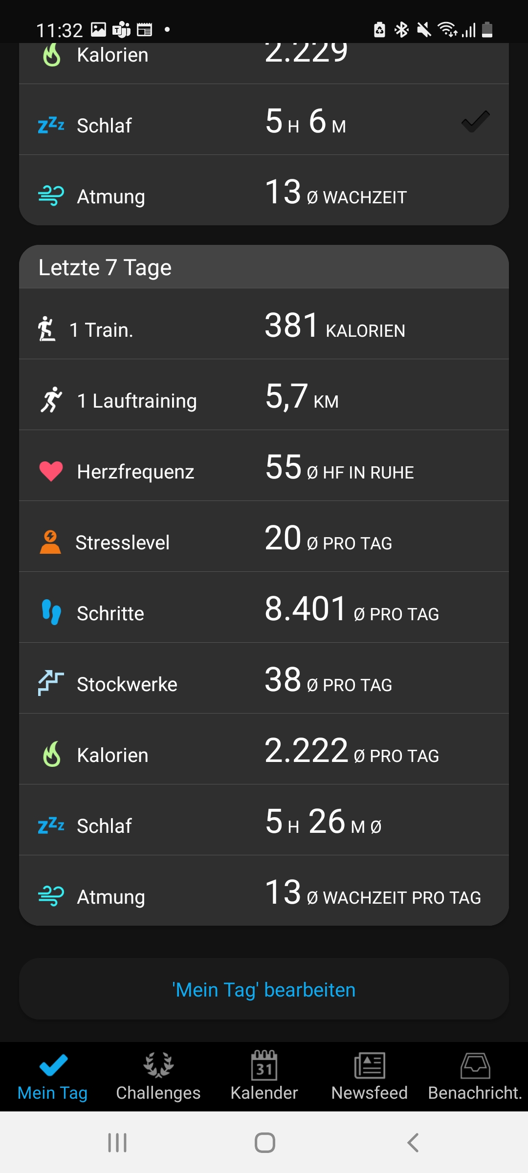 Wo die Venu 2 Plus ebenso wie die Venu 2 hingegen punkten können, ist das Tracking von Schritten und Pulsfrequenz allgemein. Wer möchte, legt ein tägliches Ziel für Schritte und Stockwerke fest, damit die Uhr dann per Vibration und Display-Nachricht mitteilt, wenn das jeweilige Ziel erreicht wurde. Die Messungen funktionierten zuverlässig und geben einen guten Überblick über die tägliche Aktivität. Das Display zeigt auch jederzeit den aktuellen Stand beim Tagesziel an. Nutzer, die besonders viel in sitzender Position verbringen, können eine Bewegungserinnerung einrichten, die sie dazu auffordert, sich in gewissen zeitlichen Abständen zu bewegen. All das gehört zwar mittlerweile zum Standard der meisten Sportuhren am Markt, täuscht aber nicht darüber hinweg, dass Garmin diese Features mit der Venu 2 (Plus) sehr gut umsetzt.