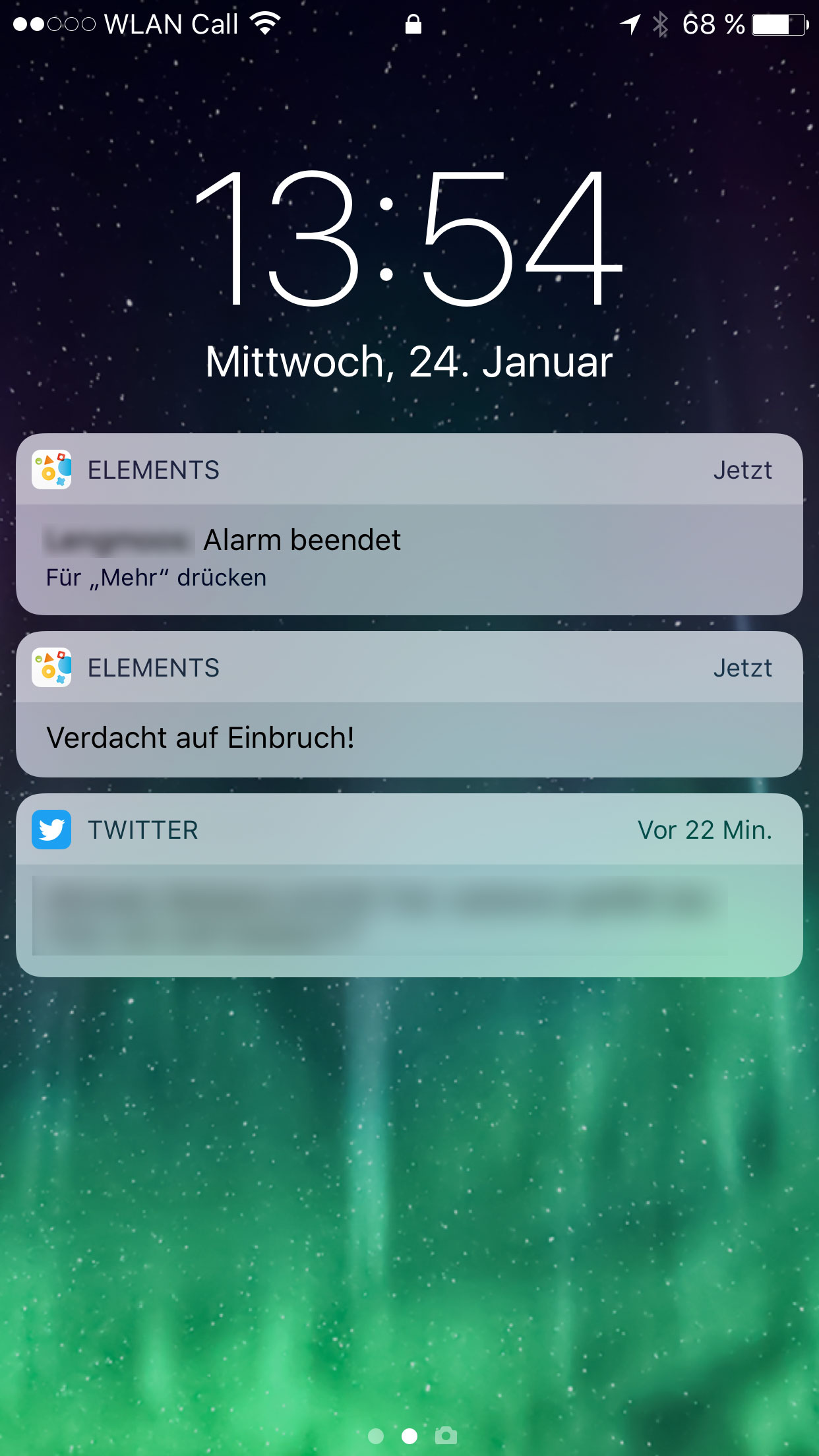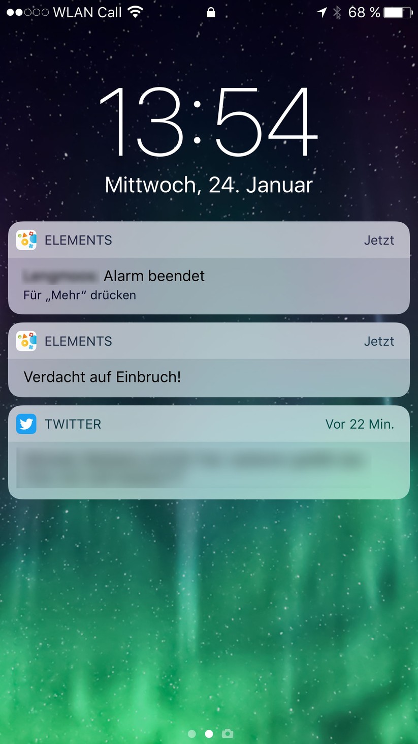 Ist die Alarmanlage scharf, führt das Ansprechen der Sensoren zum Alarm. Im konkreten Fall unseres Sets bedeutet das, dass Push-Meldungen an die registrierten Smartphones herausgehen und die Alarmsirene in der Wohnung trötet – übrigens durchaus auffällig laut.