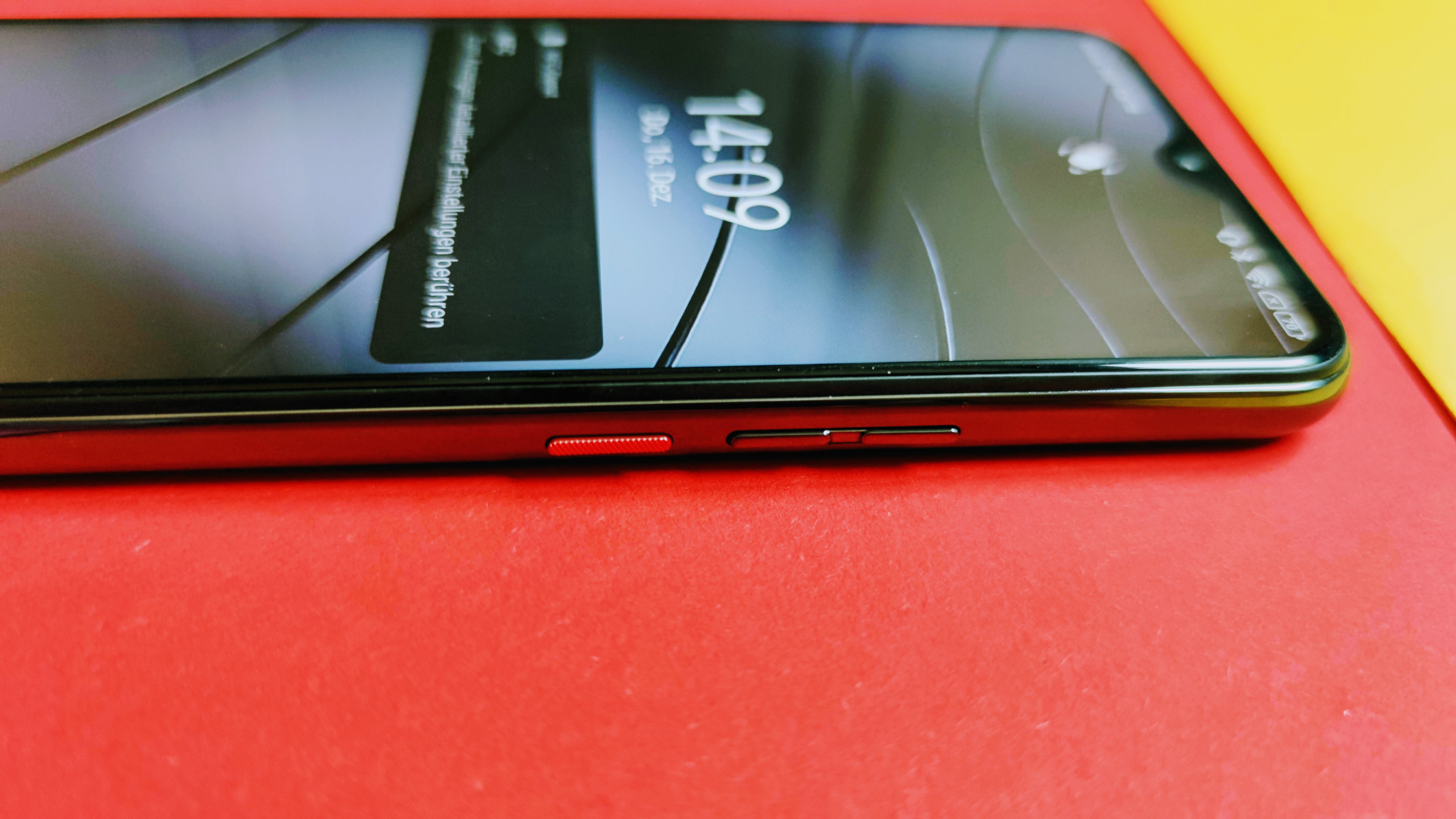 Sehr lobenswert: Das Smartphone liegt komplett eben auf, da die beiden Kameralinsen und der LED-Blitz komplett in das Gehäuse eingefasst sind. Bei vielen anderen Smartphones ragt das Kameraelement deutlich hervor und stört damit die Haptik. Elegant und dominant ist der Fingerabdrucksensor mittig im oberen Bereich auf der hinteren Gehäuseabdeckung aus Glas. Im Alltag hat das aber den Nachteil, dass man das Handy nicht per Fingerabdruck entsperren kann, wenn es auf dem Tisch liegt.