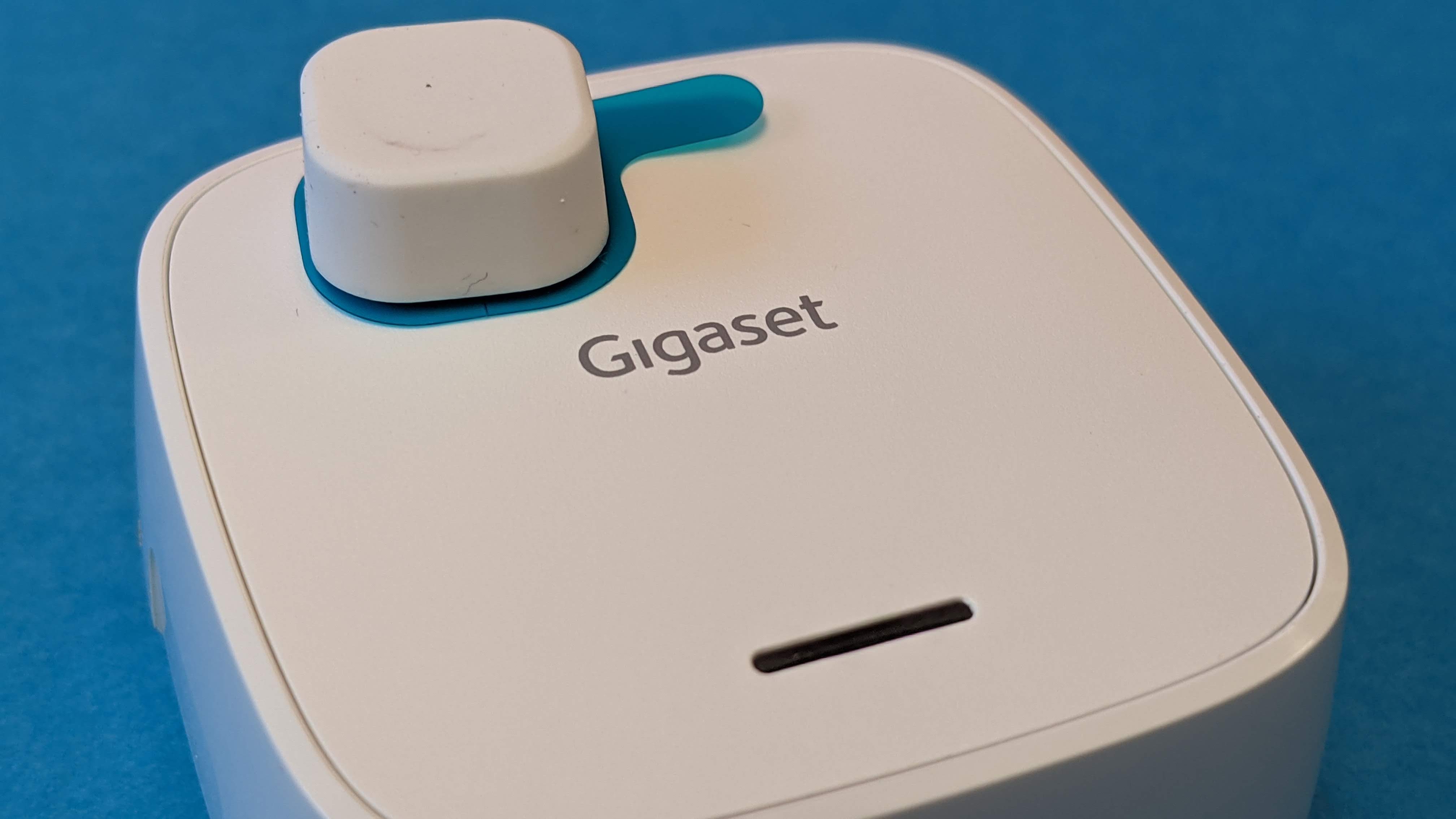 Das Gigaset Heizkörperthermostat kommt in der Form eines leicht ovalen Zylinders mit den Maßen 8 × 6,7 × 5,5 Zentimetern. Damit gehört es zu den größeren Vertretern unter den smarten Heizkörperthermostaten. Es besteht zum großen Teil aus einem matten, weißen Kunststoff, unser Testgerät wies jedoch einen leichten Gelbstich auf. Seine Spaltmaße sind vergleichsweise groß. Auf der Vorderseite klemmt eine Kappe mit einem großen „Gigaset Thermostat “-Aufdruck. Dahinter verbirgt sich ein Fach für zwei mitgelieferte AA-Batterien, eine Angabe zu Batterielaufzeit gibt es nicht. Die Klappe ist in den meisten Fällen gut erreichbar, wenn das Thermostat am Heizkörper hängt.