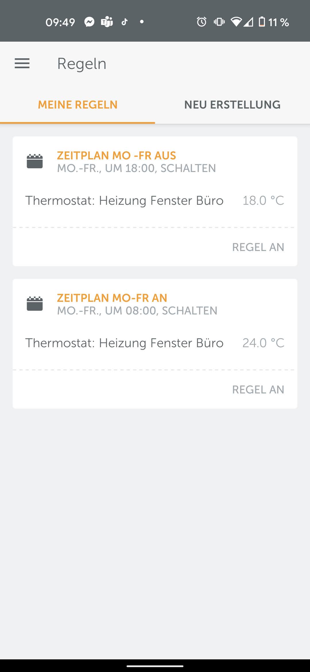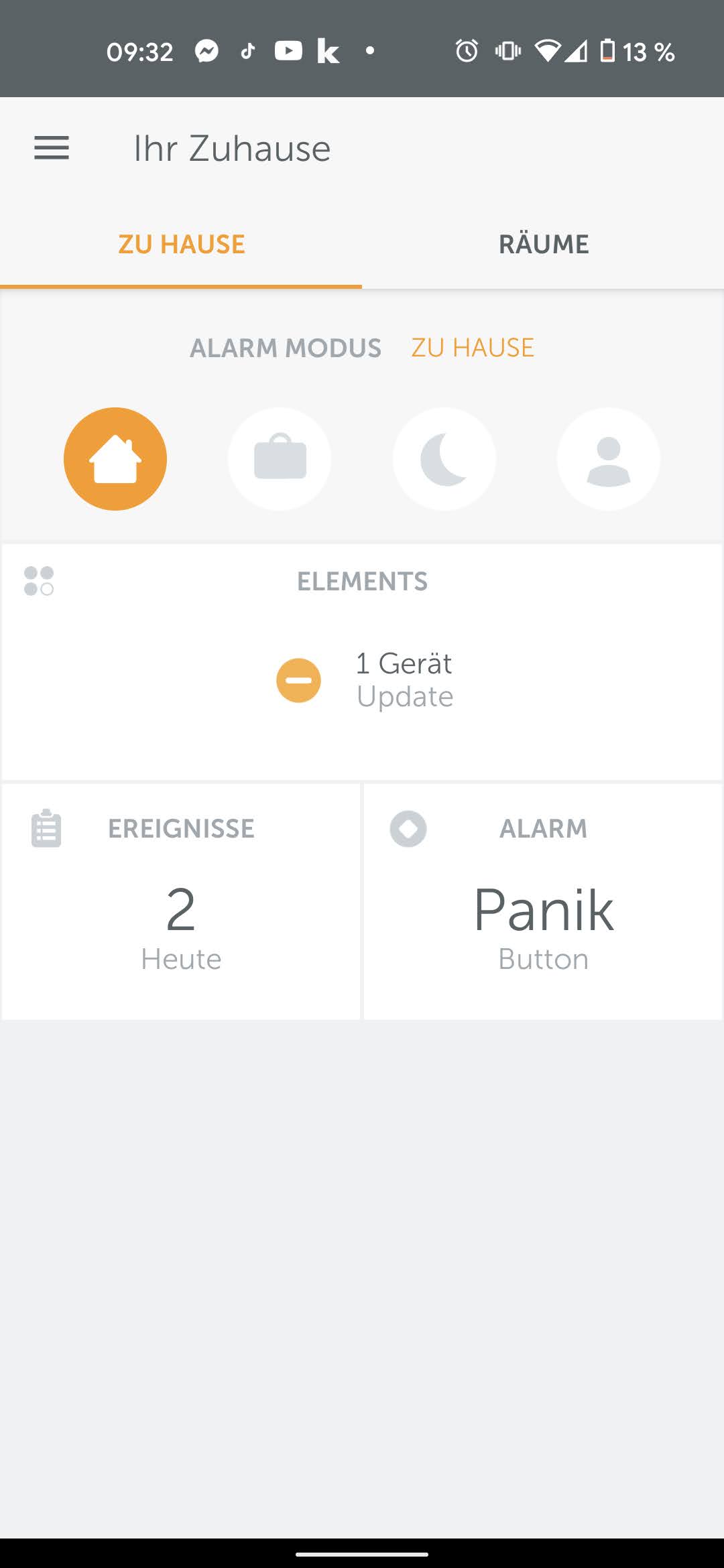 Optisch gibt es zunächst nicht viel auszusetzen. In schlichtem Weiß/Grau/Orange gehalten haben ihre Designer an angenehm viel Weißfläche gedacht und sie übersichtlich gestaltet. Über das Burger-Menü auf der linken oberen Seite führt über den Punkt Ihr Zuhause auf eine Übersichtseite mit einer Liste von Ereignissen und einigen Punkten, die Nutzern der Alarmanlage vorbehalten sind. Wer hier eine schnelle Anpassungsmöglichkeit der Solltemperatur vermutet, liegt zwar nicht komplett falsch, sucht aber lang. Denn dafür sind viel zu viele Schritte nötig. Ihr Zuhause > Räume > (in unserem Fall) Büro > Thermostat > Einstellen auf > Einstellen > Für Raum übernehmen . Das sind sieben Schritte und deutlich mehr als bei den allermeisten Konkurrenzlösungen. Zumindest funktioniert das ganze auch über das Mobilfunknetz ortsunabhängig.