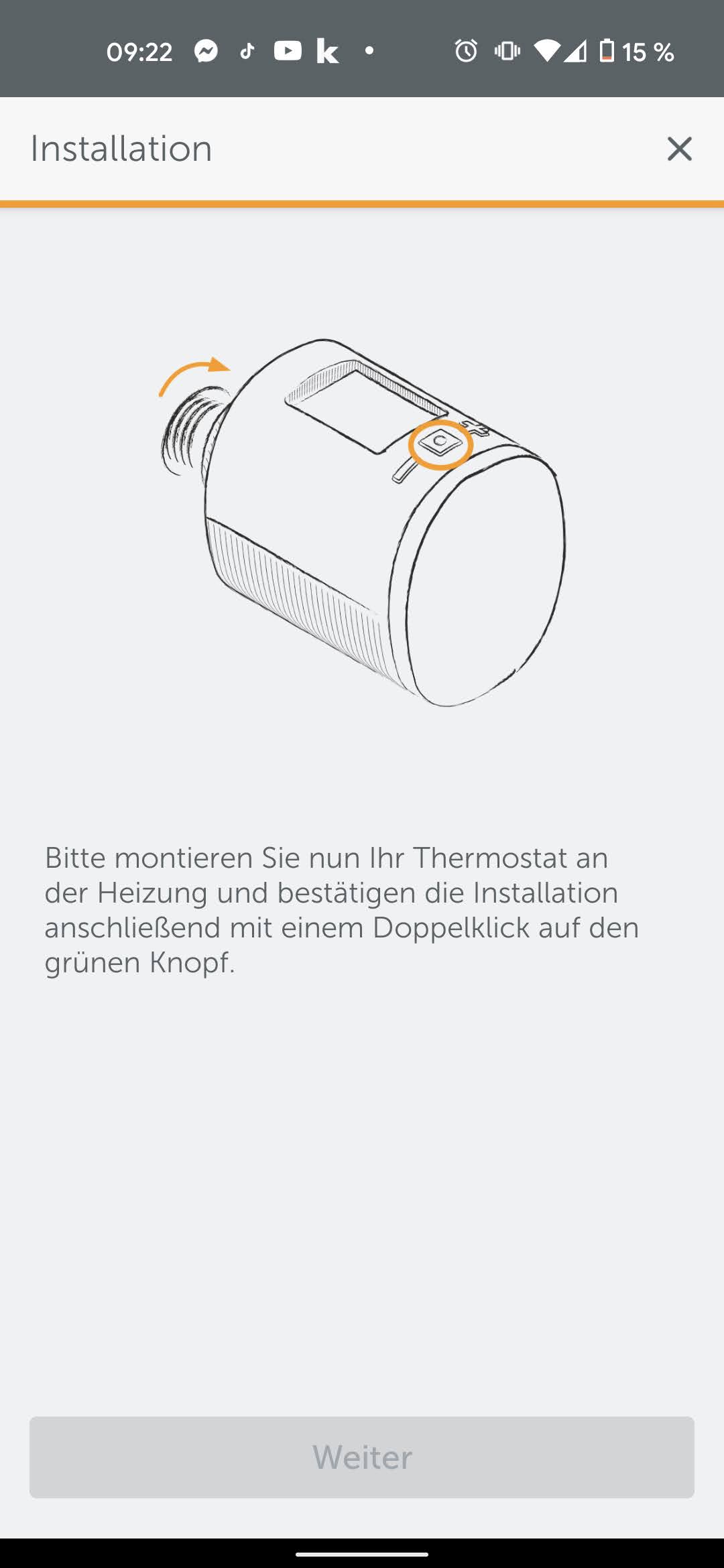 Das Befestigen des Thermostats am Heizkörper geht in den allermeisten Fällen problemlos von der Hand. Eine Rohrzange vorausgesetzt, sollten auch handwerklich weniger begabte Käufer damit keine Probleme haben. Vor einem Wasserschaden braucht niemand Angst zu haben, da der Wasserkreislauf der Heizkörper geschlossen ist. Bei den allermeisten Heizkörpern greift die Übermutter direkt, für ein paar Ausnahmen liegen drei Adapter aus Kunststoff bei. Wer einen sehr exotischen Heizkörper hat, muss eventuell entsprechende Adapter nachkaufen.