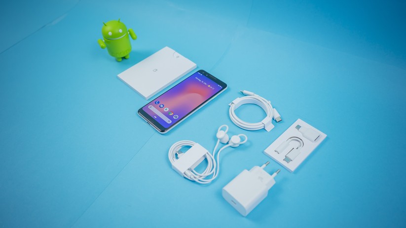 Das Pixel 3 kommt gut und sicher verpackt zum Kunden. Neben dem Smartphone finden sich im Lieferumfang ein Schnellladegerät, ein 1 m langes Strom- und Datenkabel mit USB-C-Steckern auf beiden Seiten sowie gut verarbeitete und angenehm klingende Kopfhörer samt Adapter.
