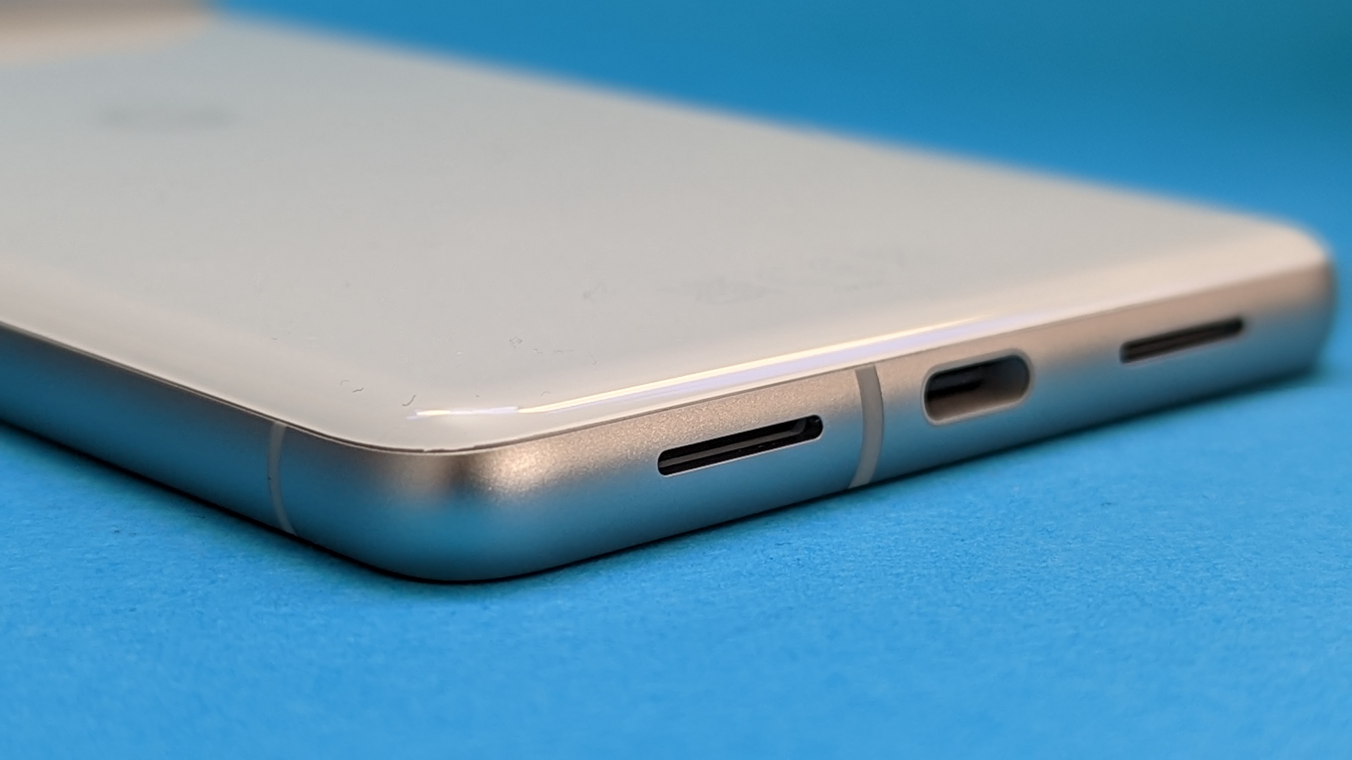 Auf der linken Seite sitzt der SIM-Kartenslot. Für alle Pixel-Kenner wenig überraschend: Der 128 GByte große Speicher des Smartphones kann nicht über Micro-SD-Karten erweitert werden. Wer 100 Euro mehr investiert, kann das Handy auch mit 256 GByte Speicher kaufen. Das Pixel 7 unterstützt eine eSIM. Käufer können sich zwischen weiß, schwarz und hellgrün entscheiden.