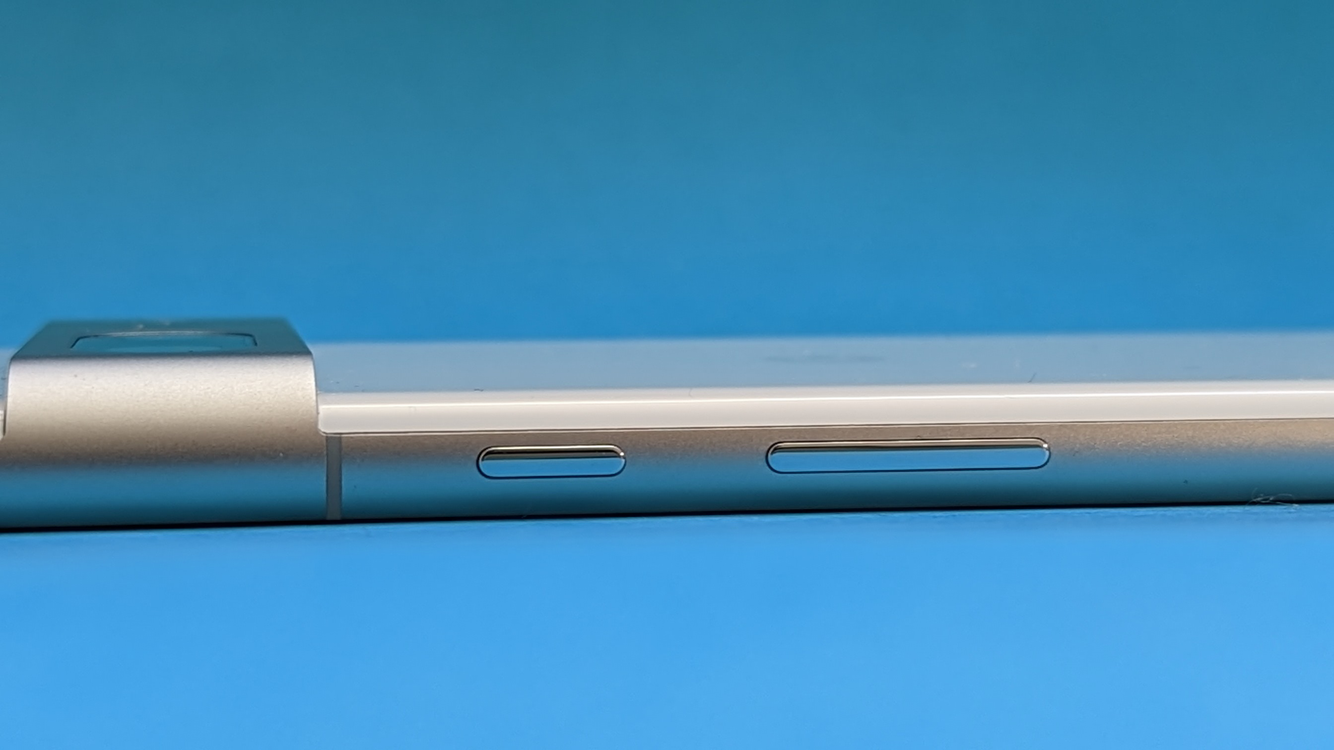 Das Visier auf der Rückseite besteht nun nicht mehr aus mehreren Glasversatzstücken, sondern ist aus Metall. Es ist zusammen mit dem Rahmen aus einem Stück gefertigt. Das sollte dem Pixel 7 zusätzliche Stabilität verleihen. Tatsächlich ist das Smartphone sehr verwindungssteif. Auch knarzt oder wackelt nichts. Die Taster auf der rechten Seite haben einen hervorragenden Druckpunkt, der sich abermals besser anfühlt als beim Pixel 6.