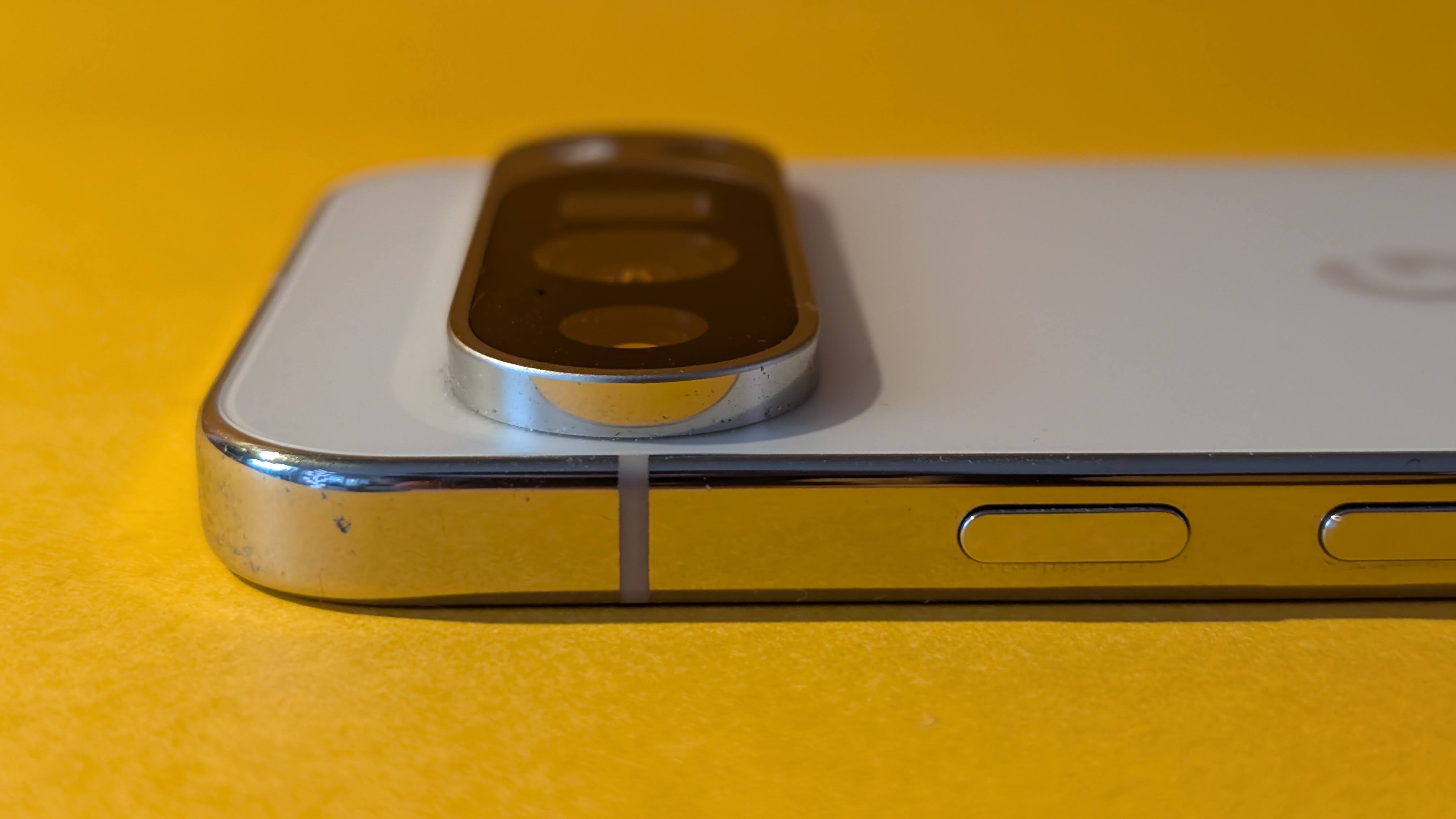 Das Google Pixel 9 Pro erinnert etwas an aktuelle iPhones, setzt aber mit dem matten Glasrücken in satinierter Optik eigene Akzente. Das deutlich herausragende Kameramodul ist schick integriert. Auf dem Rücken liegend, wackelt nichts.