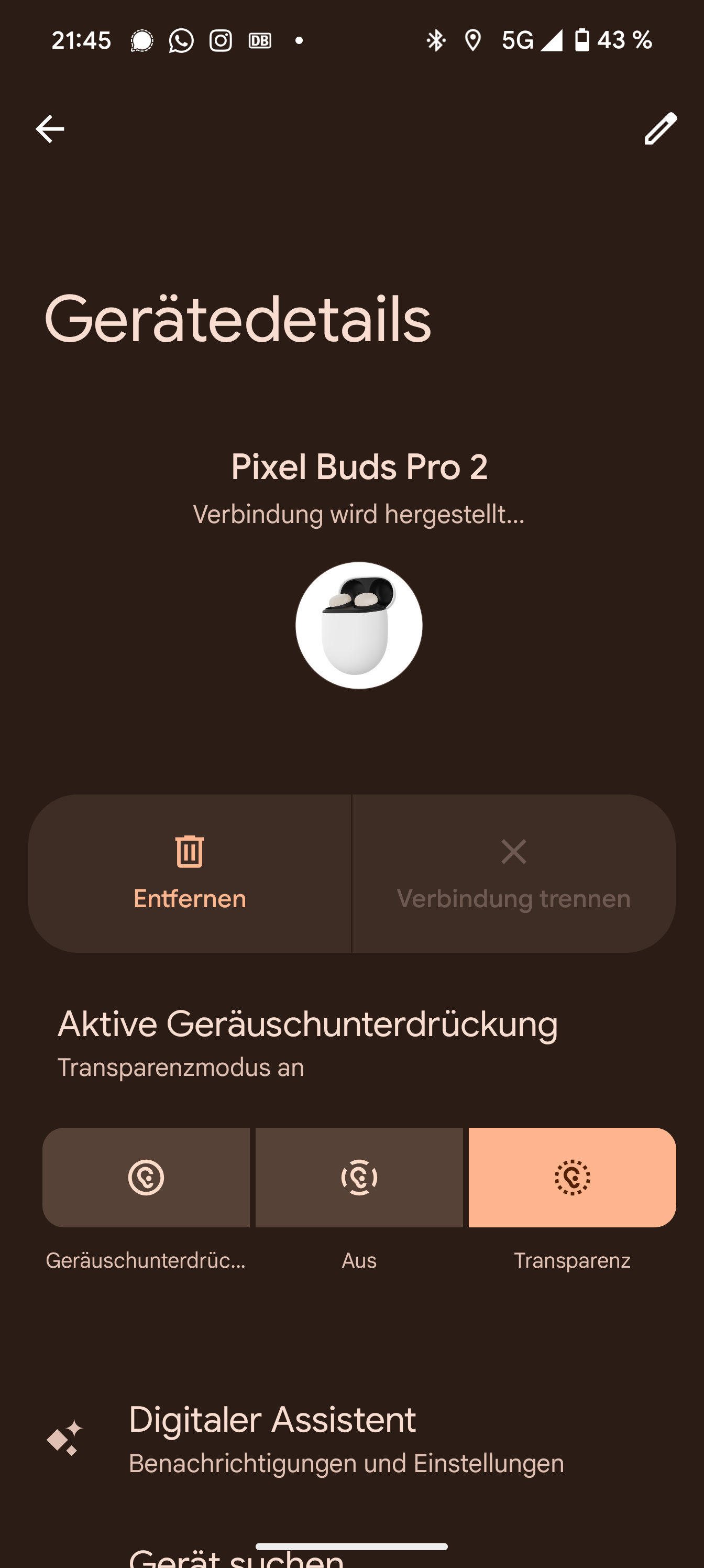 Im Test hatte die Einrichtung und Nutzung zunächst massive Probleme bereitet, die Kopfhörer haben sich nicht richtig mit unserem Google Pixel 8 Pro verbunden. Auf dieses hatten wir im Frühsommer die Android-15-Beta installiert, waren aber längst zur stabilen Version gewechselt. So waren in der Buds-App wichtige Optionen ausgegraut und wir konnten nicht mehr manuell die Verbindung trennen, ohne die Kopfhörer ins Case zurück zu packen. Mit einem anderen Pixel 8 Pro, das nicht zuvor in der Beta war, gab es keine Probleme. Das Android-Quartals-Update im Dezember hat die Probleme aber behoben – gut so!