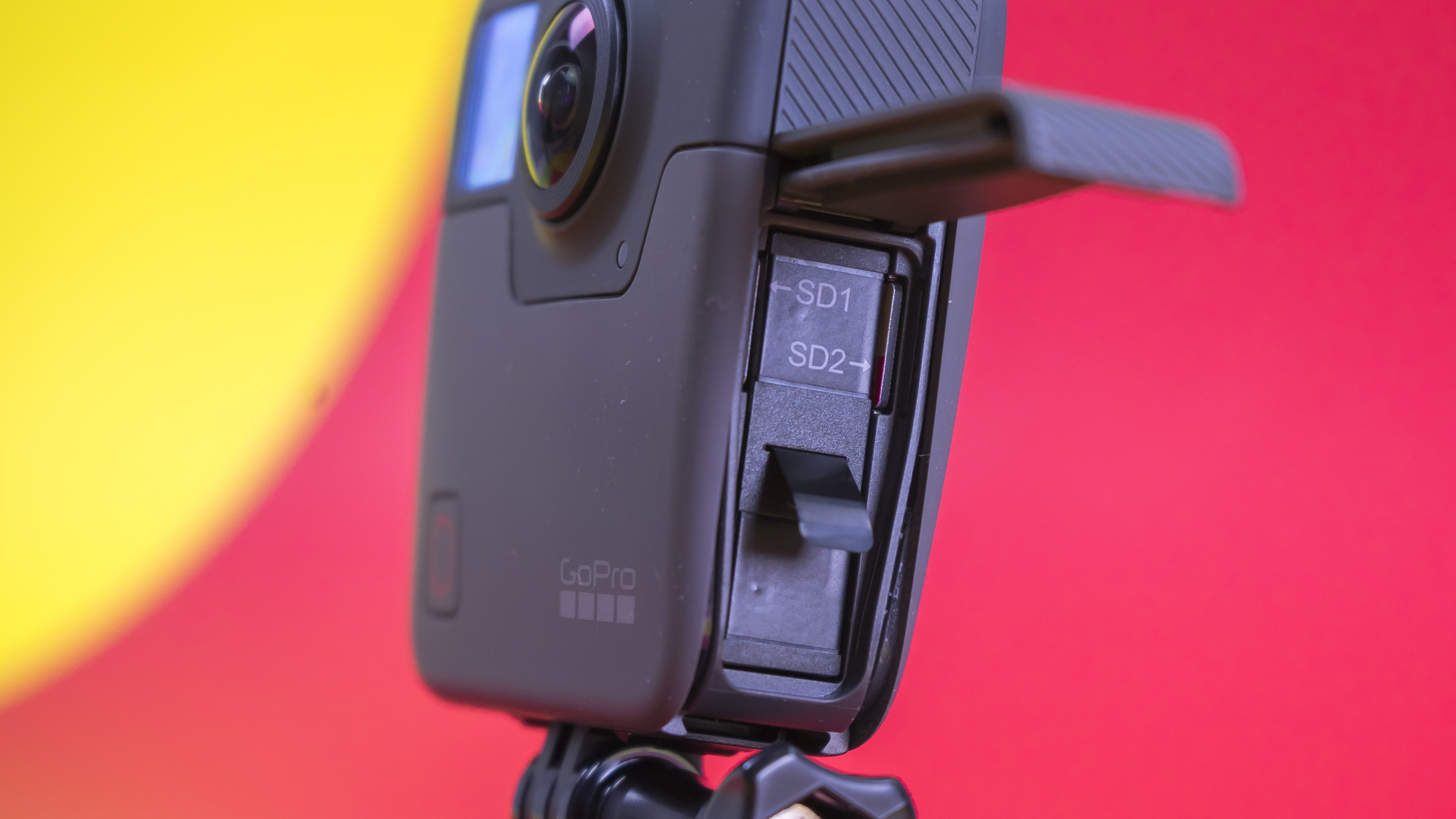 Auch bereits eingesetzt: Zwei MicroSDs mit einer Kapazität von 32 GByte. Das Abspeichern auf den beiden Speichern verwaltet das System selbst. Die Desktop-Software Fusion Studio unterscheidet die Speicherkarten hierbei als Fusion Front und Fusion Back . Auch unsere 400 GByte großer Speicherkarte der MicroSDXC hat einwandfrei funktioniert. Wichtig ist die Lesegeschwindigkeit der Karte, die mindestens 90 MByte pro Sekunde betragen muss. Geringere Datenraten führen zu einem langsameren Export.