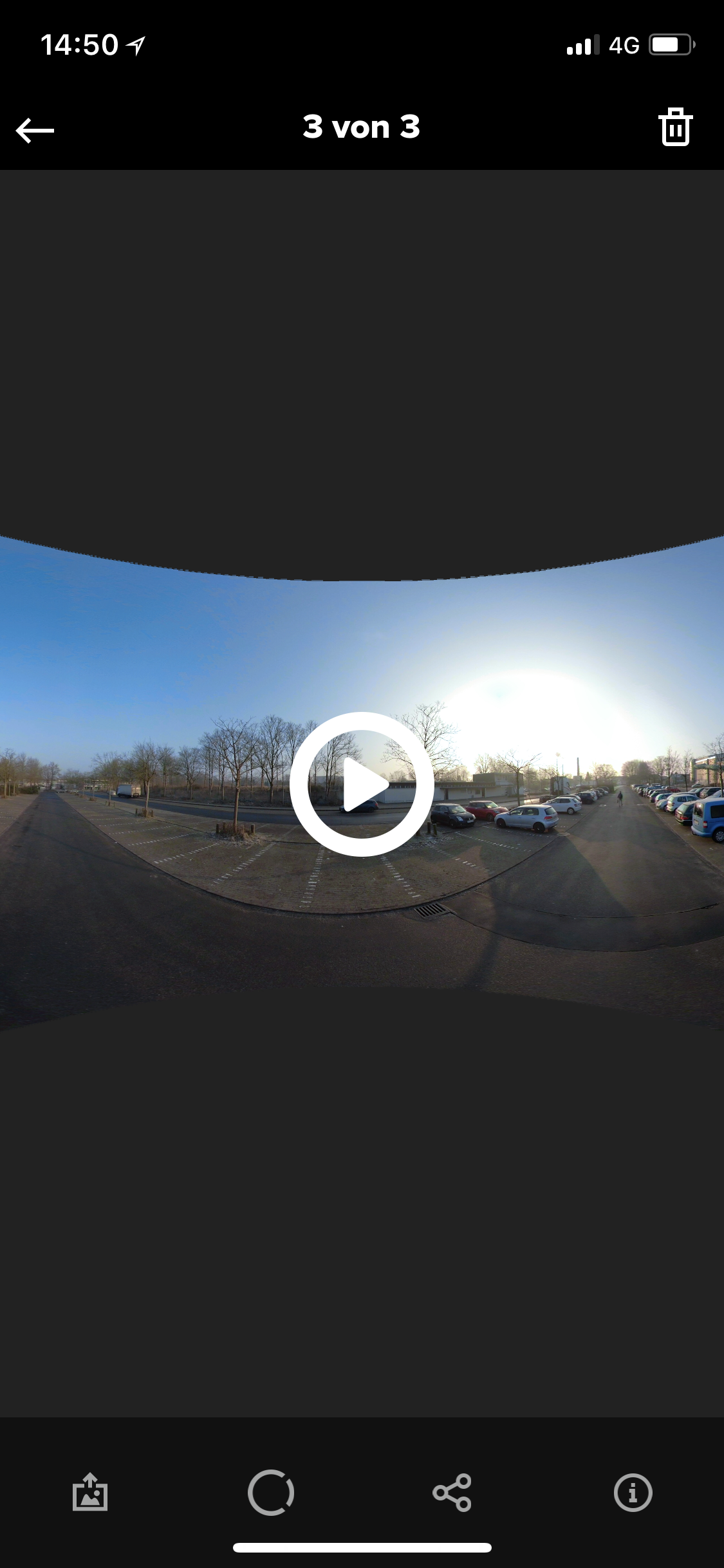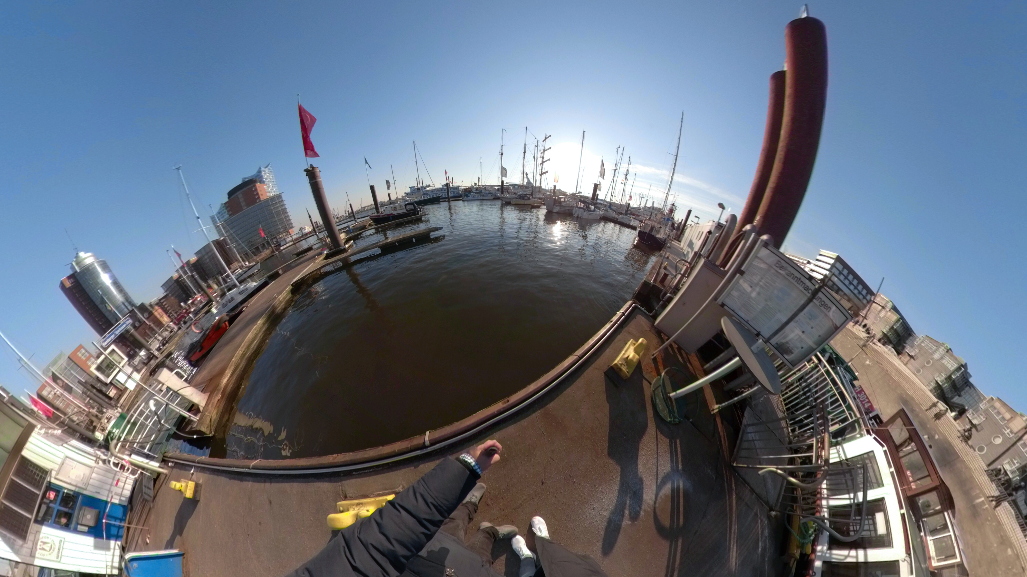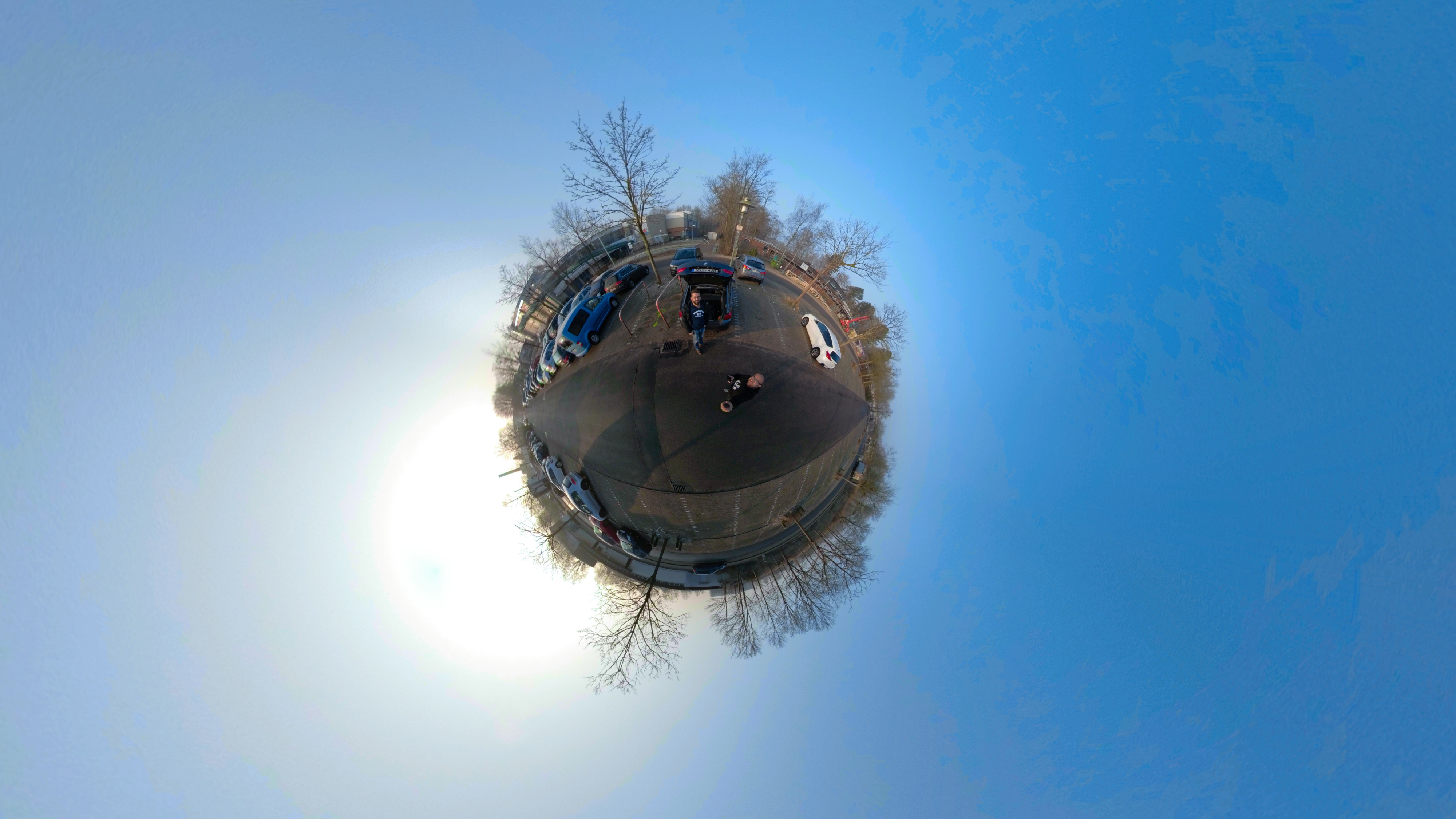 Die GoPro-App kann mit dem 360-Material einiges anfangen: zum Beispiel Bilder in verschiedene Ansichten umwandeln. Eine Möglichkeit bietet die Funktion Tiny Planet: Dabei wird die Umgebung wie ein kleiner Planet dargestellt. Der Effekt kommt besonders zur Geltung, wenn man sich im Wasser oder in einer Landschaft befindet. Ein Stadtbild wirkt unproportioniert.