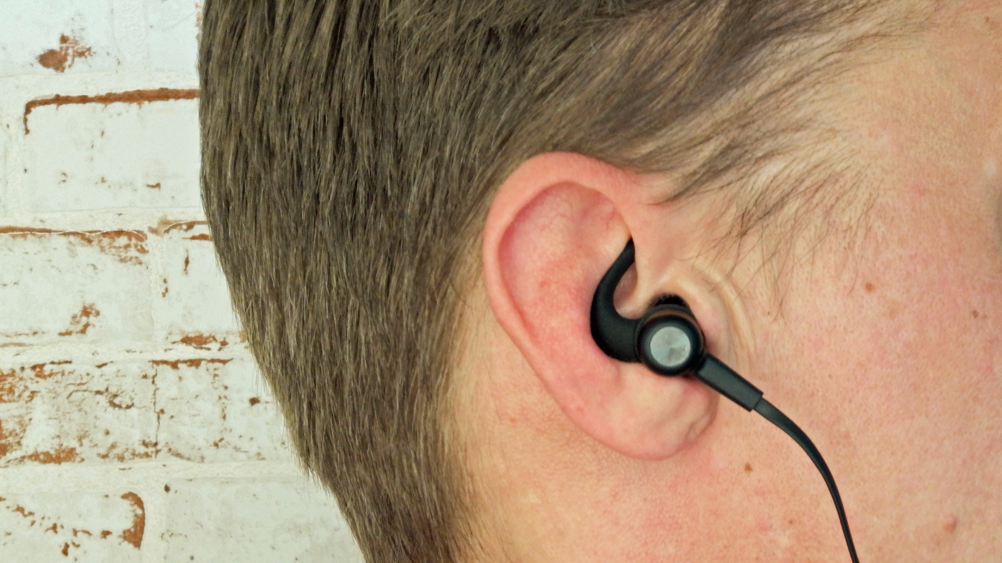 Die Ear-Fin-Halterungen sind wie kleine Flügel und passen exakt in die Ohrmuschel oberhalb des Gehörgangs. Sie sitzen erstaunlich fest und drücken die Ohrstöpsel in die korrekte Position. Zudem sorgen sie insgesamt für verbesserten Halt, ohne den Tragekomfort zu schmälern. Die Befürchtung, dass die Ear-Fins unangenehm sein könnten, bestätigt sich nicht. Damit die Kopfhörer vernünftig sitzen, ist es wichtig, die korrekte Größe der Silikon-Teile zu wählen. In unserem Fall passt die Standardgröße.